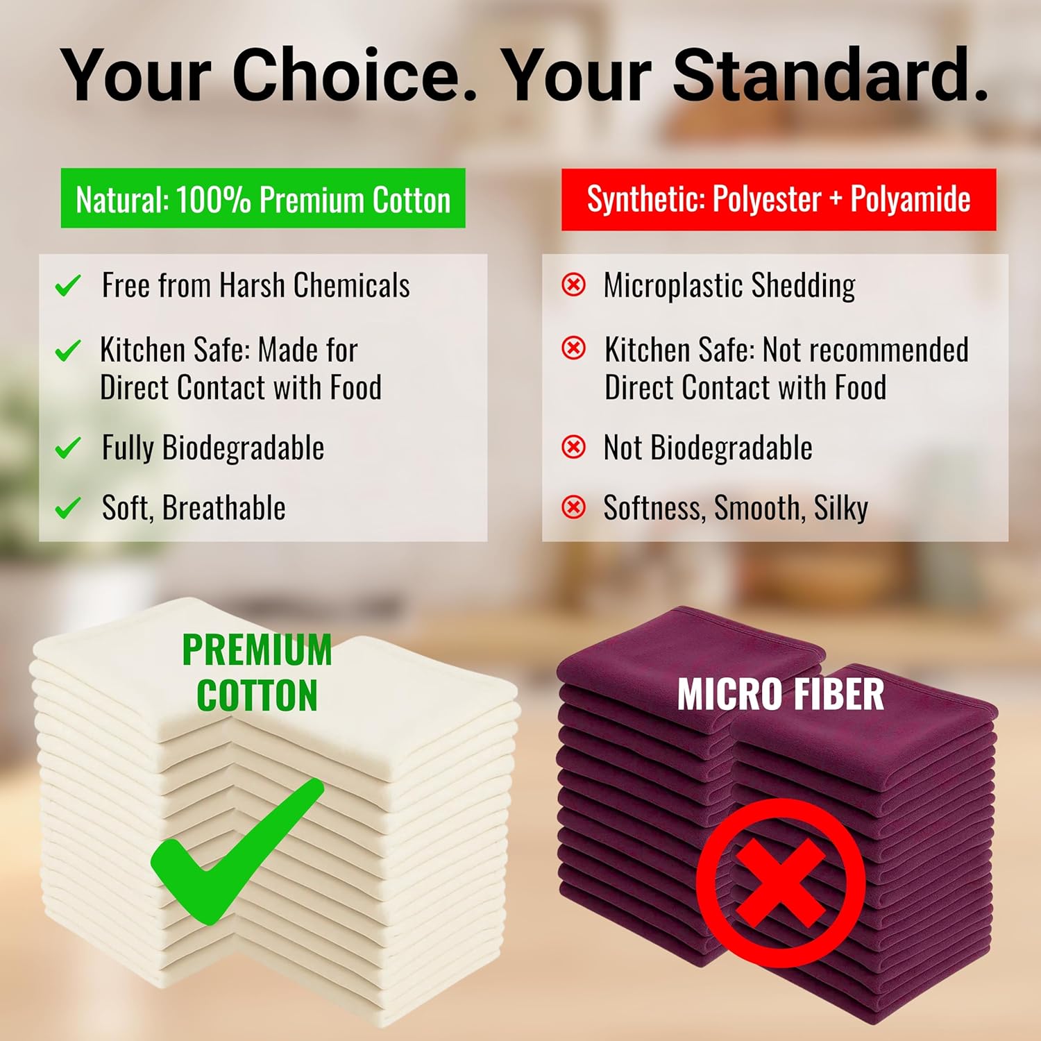 - MULTIPURPOSE: Their lint-free pure ring-spun cotton composition makes them perfect for drying glassware, hands and surfaces. Moreover, they excel at tasks like cheese straining, salad spinning, and even serving as reliable dough covers for baking.