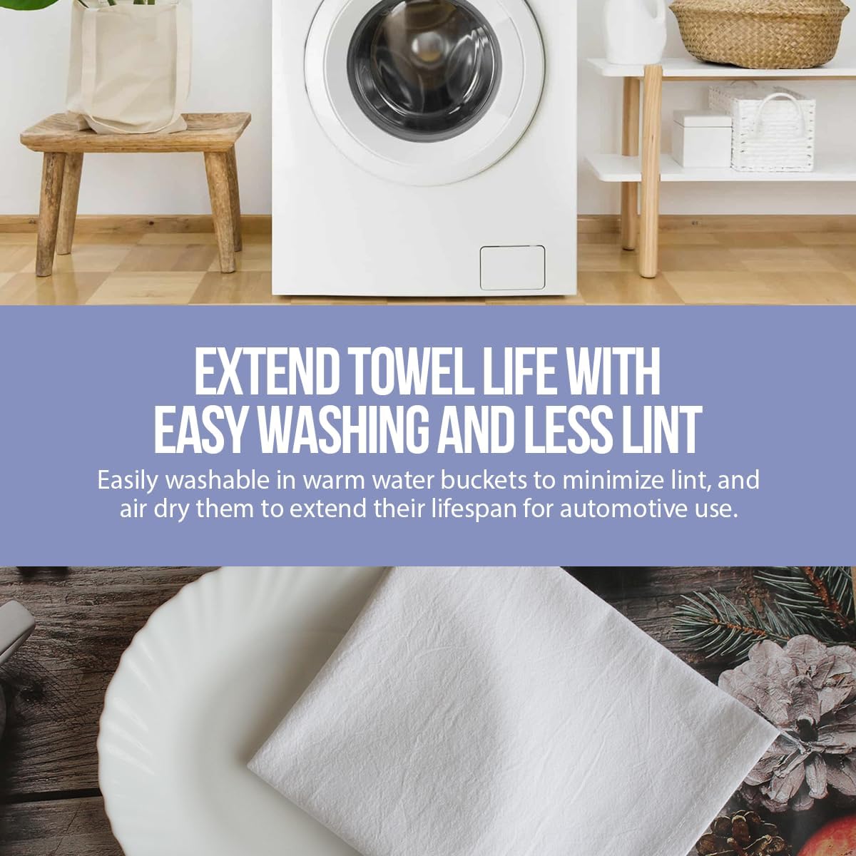 - ECO-FRIENDLY AND FUNCTIONAL : Embrace sustainability by choosing towels that efficiently diminish the reliance on paper towels, thereby supporting the conservation of trees. These flour sack towels serve as kitchen towels, shop towels, beard towels, dust towels and more. They are excellent for polishing silver and wine glasses. Whether you need to dry, wipe, clean, or dust, these towels are perfect.