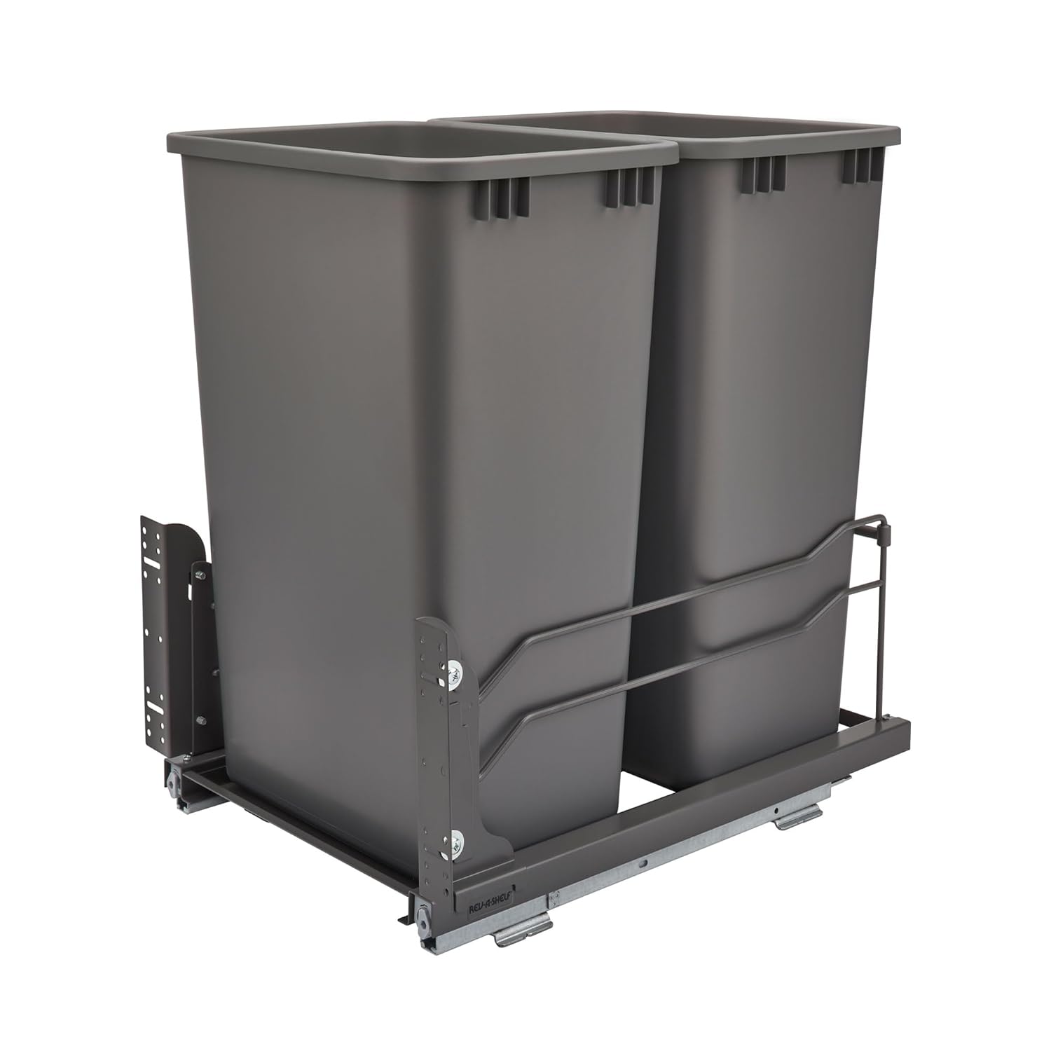 Rev-A-Shelf Pullout Dual Trash Cans for Full Height Kitchen Garbage Cabinet 50 Quart 12.5 Gallon with Soft-Close Slides, Orion Gray, 53WC-2150SCDM-213
