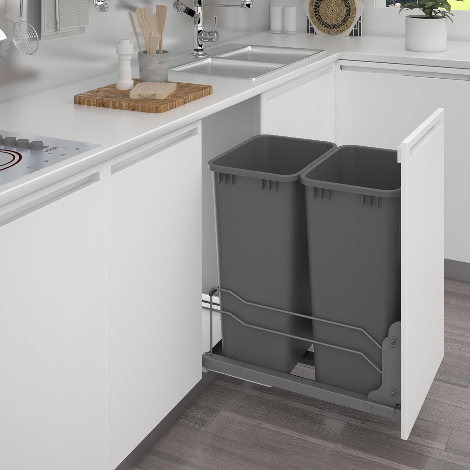 - Maximize Your Space: Maximize space and get your trash off your floor and hidden in your kitchen cabinets with these double pullout waste containers; Designed for easy access keep your home neat and trash out of sight