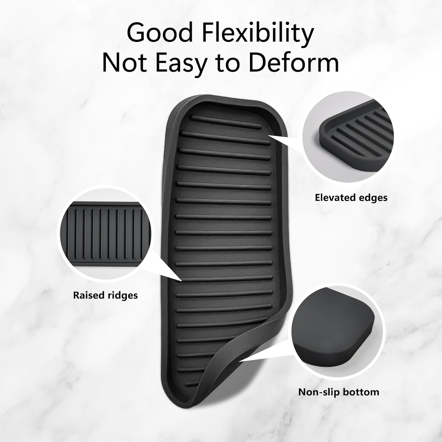 - Quick Dry: The sink caddy sponge holder designed with the raised ridges. Allows air to flow and water to evaporate quickly. The raised outer edge prevent water spill out to your counter. Your scrubbers, bar soap, steel wool and sponges will dry quickly