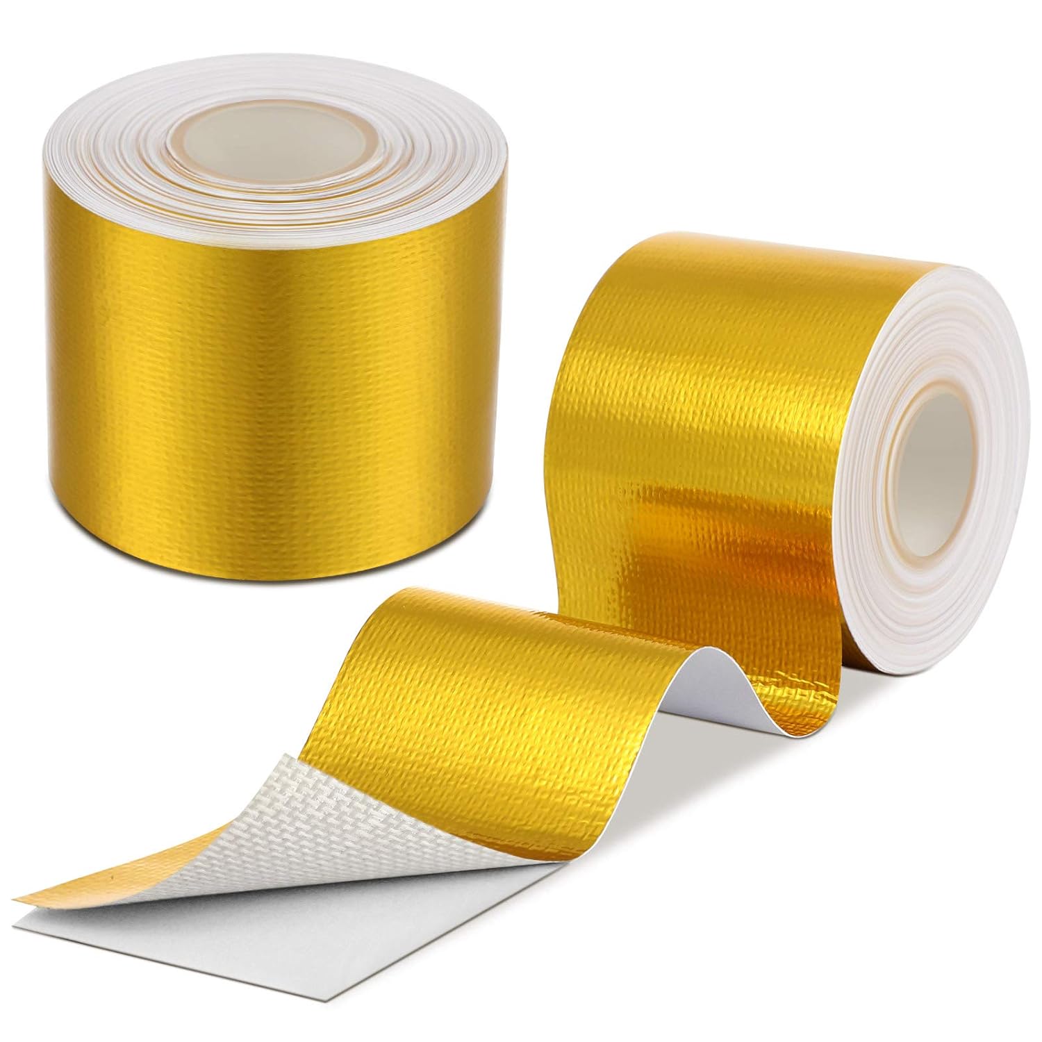 Zonon 2 Rolls Aluminum Foil Tape Heat Shield Tape Barrier Adhesive Reflective Fiberglass Thermal Insulation Reflective Material High Temp Protection(Gold,2 Inch X 32.8 ft)
