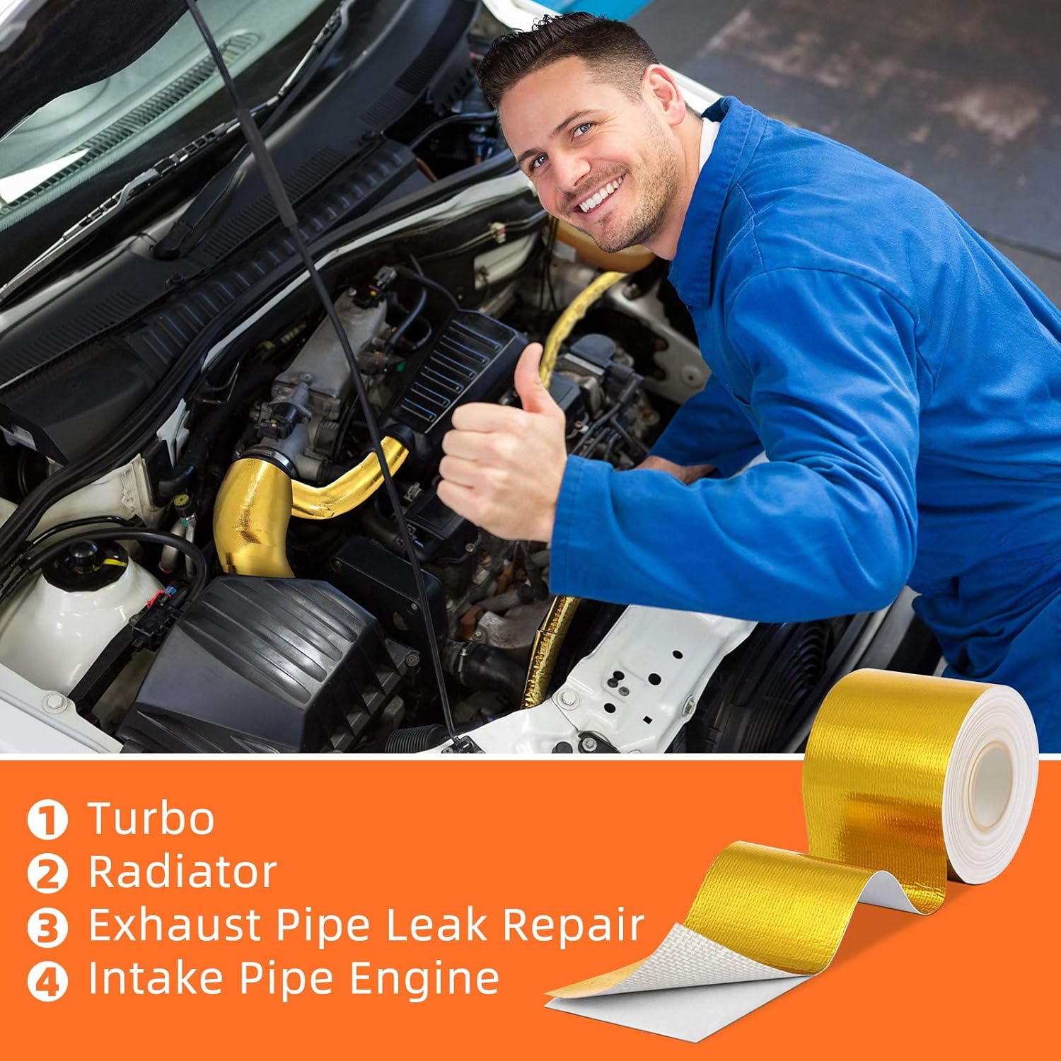 - Quality material: the adhesive heat shield tape is made of glass fiber fabric with an aluminized outer facing, which is elasticity, wear resistance, heat insulation, high temperature resistant, corrosion resistant and waterproof, and strong adhesion; This foil tape can provide ultimate protection from extreme heat as well as chemical and oil spills, dirt, grease and road grime