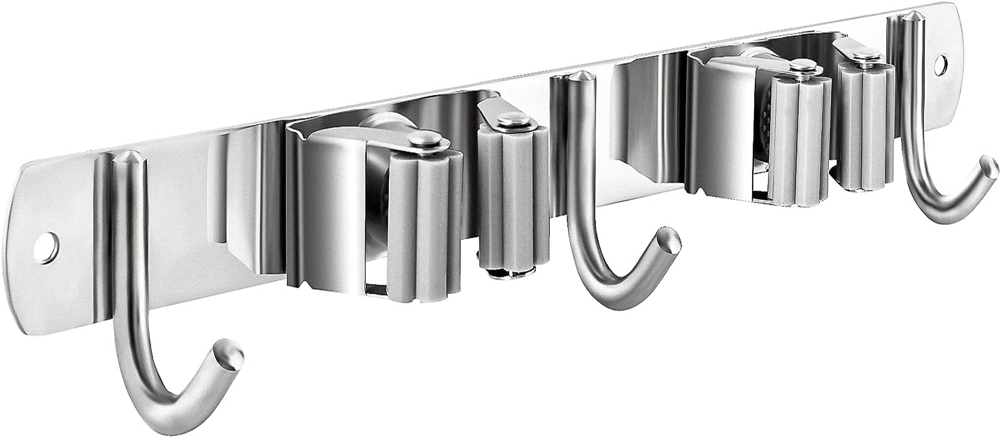 - [STRONG AND STURDY] The mop holder is made of high quality 304 stainless steel, perforated installation can carry heavy Things.