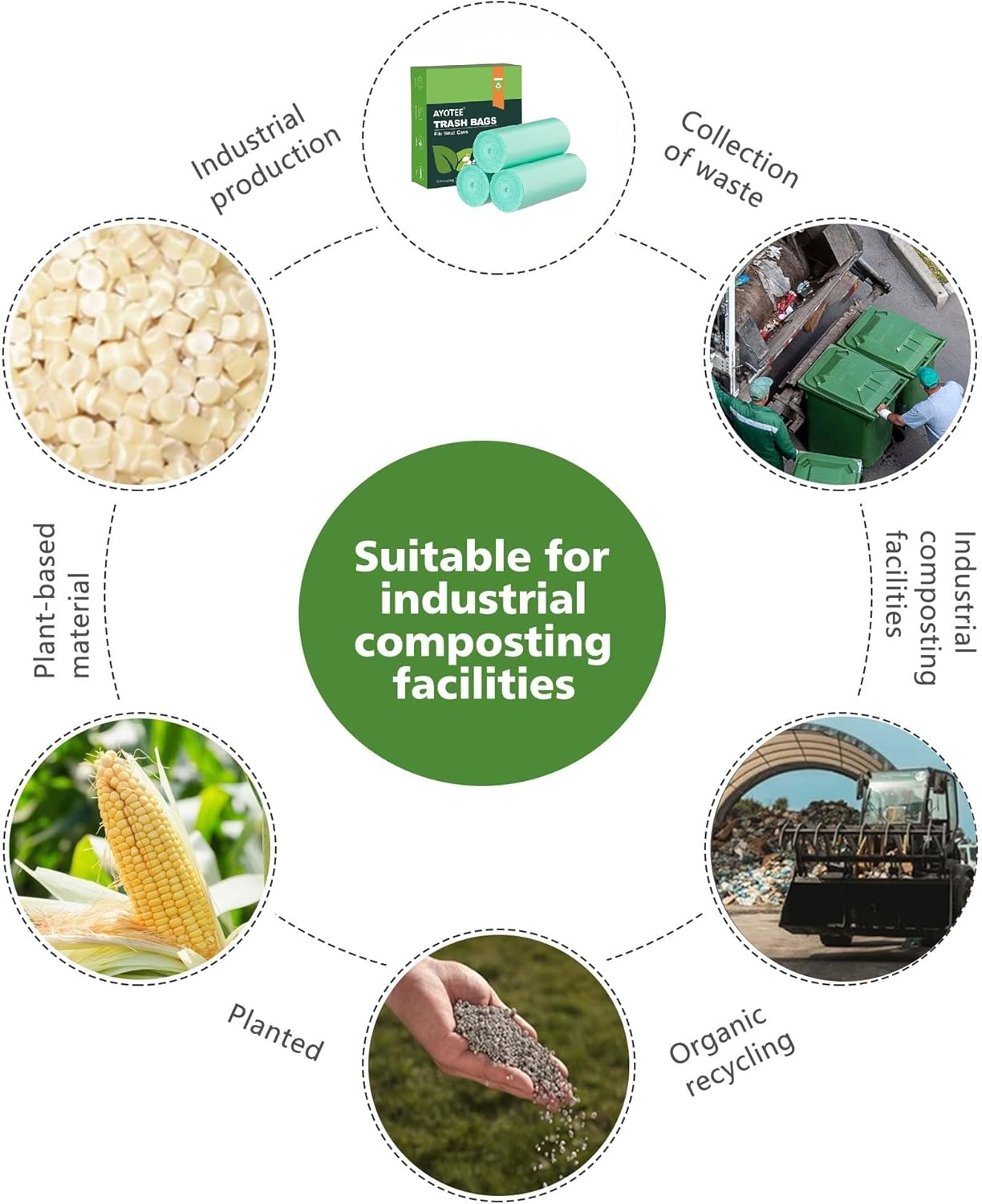- ✔【60 Counts Small 4 gallon trash bags】Our small garbage bags are all made of Plastarch material(PSM), certification by the U.S. standard ASTM Bioplastics Based On Natural Renewable Plant Starch Extract, These small compost trash bags can be rapidly degraded in municipal industrial composting facilities (at 50-60°C constant humidity), to avoid harm to the environment