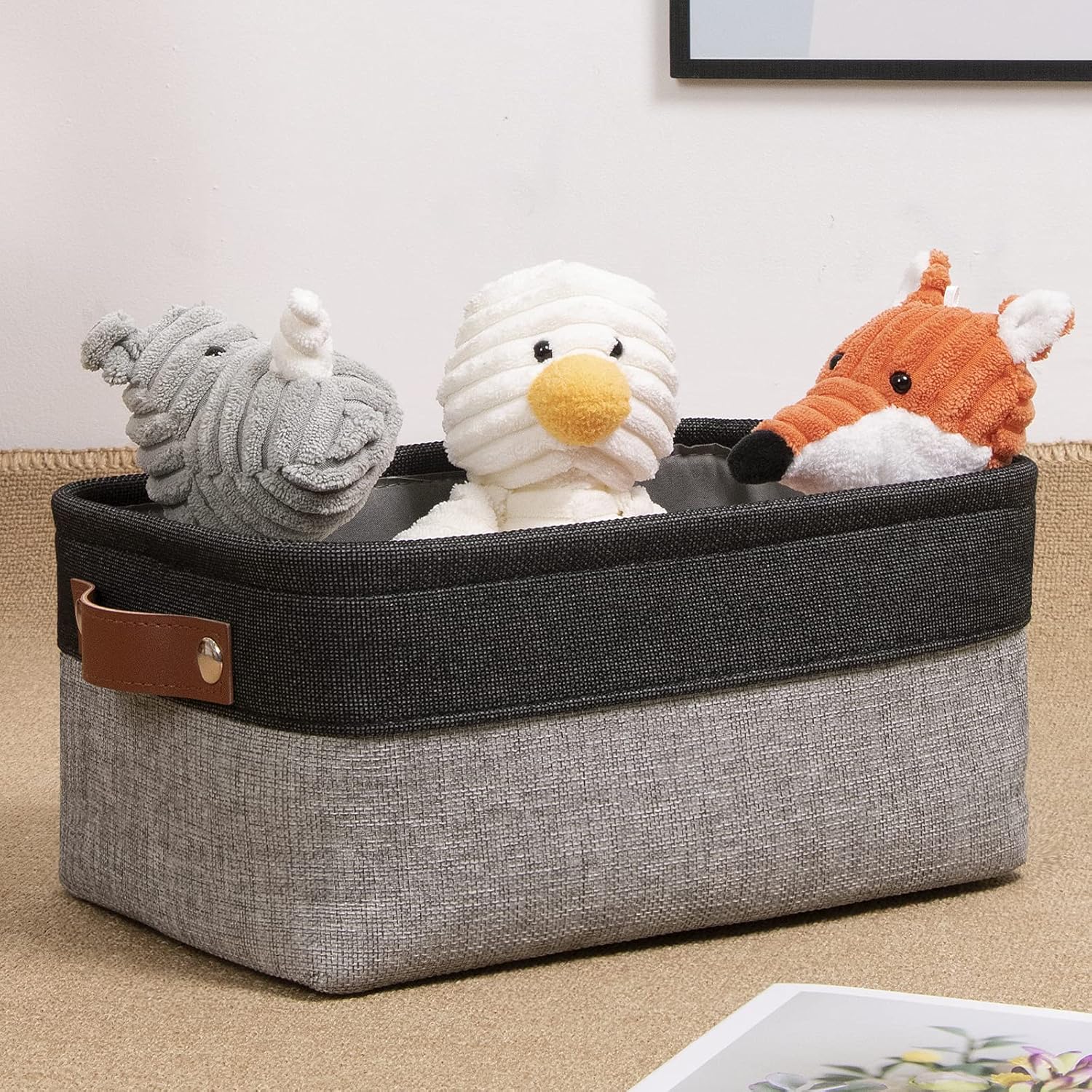 DULLEMELO Small Collapsible Fabric Basket for Organizing, Shelves, Closets, Laundry, Nursery, Decorative Gift Basket (Black&Gray)