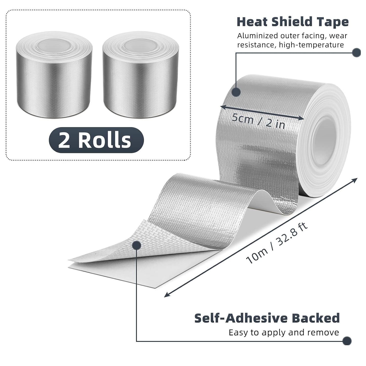 - Abundant quantity: you will receive 2 rolls of aluminum foil heat shielding tape, each roll measures approx. 10 m x 5 cm (32.8 ft x 2 inch), enough to use in daily life, and you can adjust the length according to your needs to satisfy your various projects