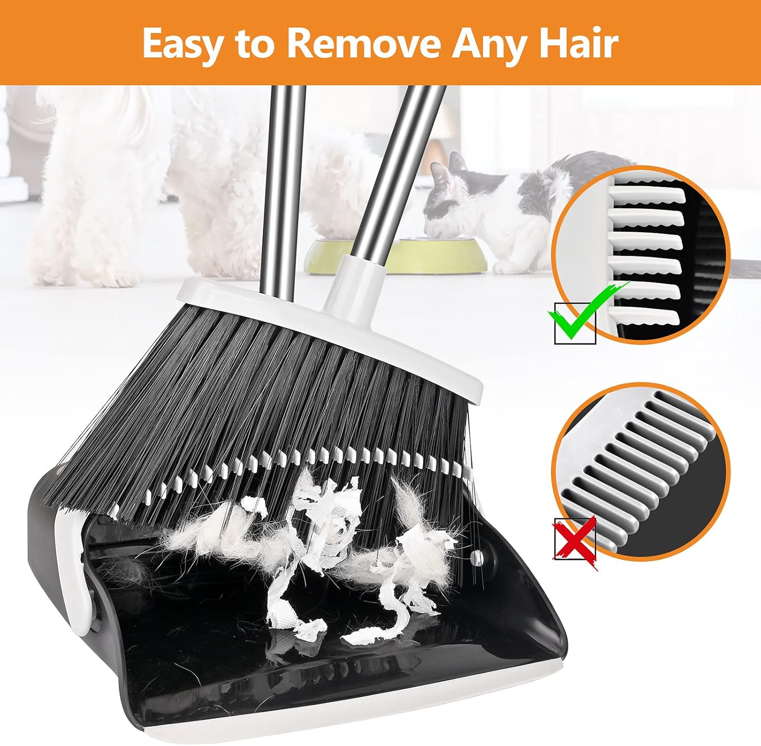 - Easy to Remove Pet Hair: From sweeping up crumbs in the kitchen to tackling pet hair in the living room, our versatile broom and dustpan set is up for any cleaning task. It effortlessly sweeps away dirt, debris, and messes in a single pass, delivering superior performance.
