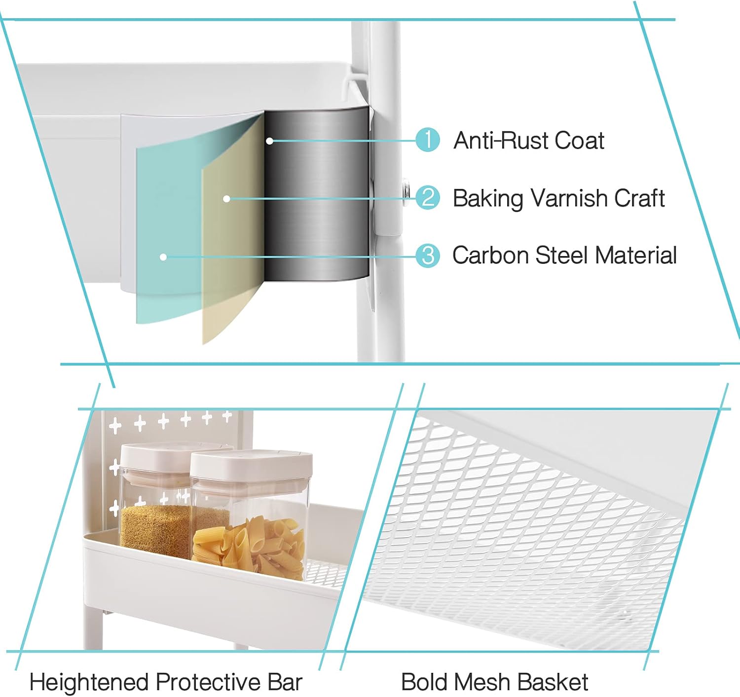 - 💦EXPLORE THE UTILITY for APPLICATION | Designed for creating extra storage space, this functional storage cart is friendly for space-saving and easy transport. Not only for pantry, kitchen, livingroom, bedroom, laundry room. But also perfect for office suppliers, classroom appliace, and hosipital suppliers. The side pegboards are effective to hang the things you want to organize.