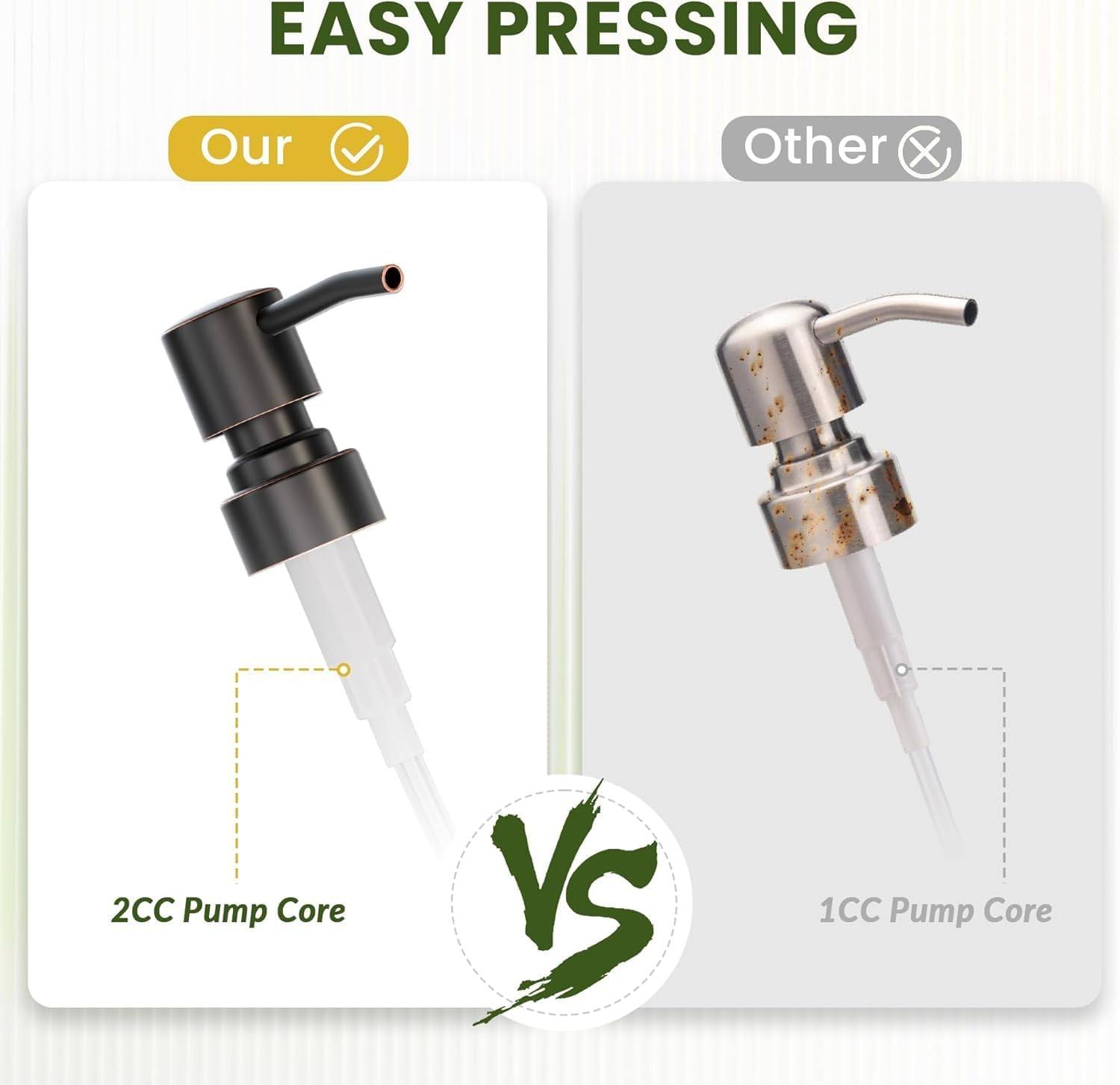 - Oil rubbed bronze pump: Improved oil rubbed pump can effectively avoid corrosion and rust than stainless steel, and deliver liquid smoothly every time without dripping.
