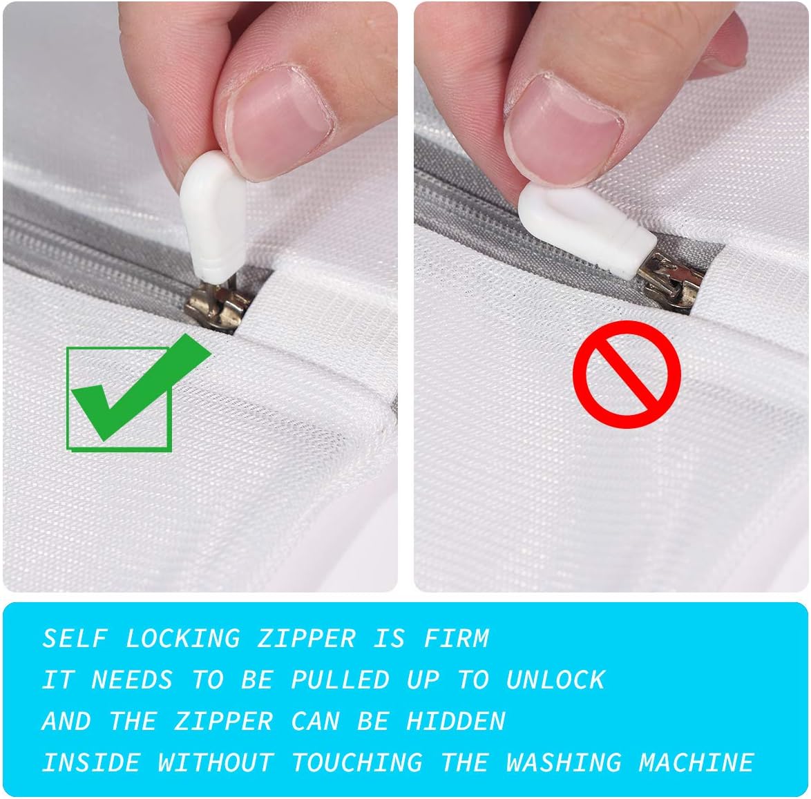 - 【Auto-lock Zipper】: This zipper laundry mesh bag has a high quality zipper with a side cover,it is aoto-locked zipper can prevent the delicate laundry wash bag opening when it running,and the side cover can protect your washing machine,avoid the matel zipper scratch the machine and also extend the service life of zipper.