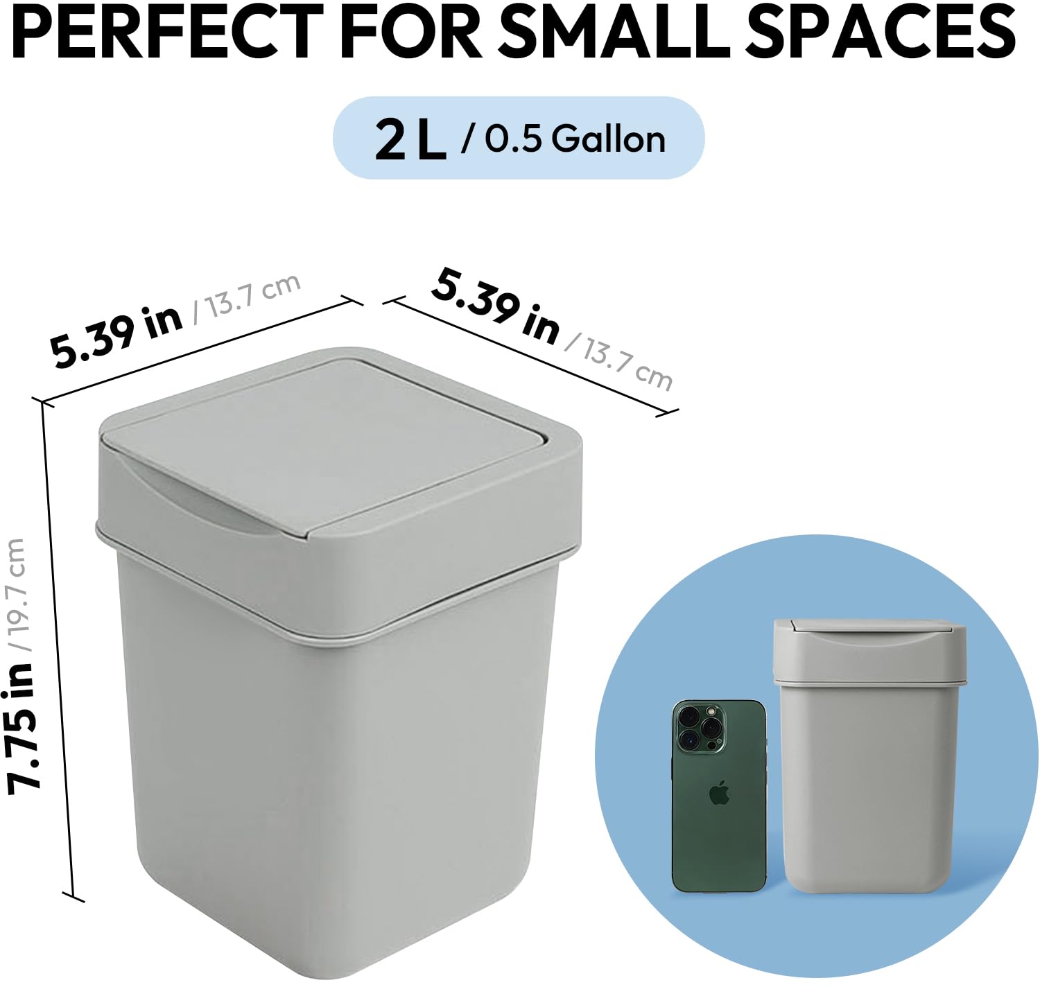 carrotez Mini Trash Can, Countertop Trash Can 2 Liter/ 0.5 Gallon, Mini Wastebasket, Garbage Container Bin for Coffee Area, Bathroom, Kitchen, Office, Tabletop- Grey