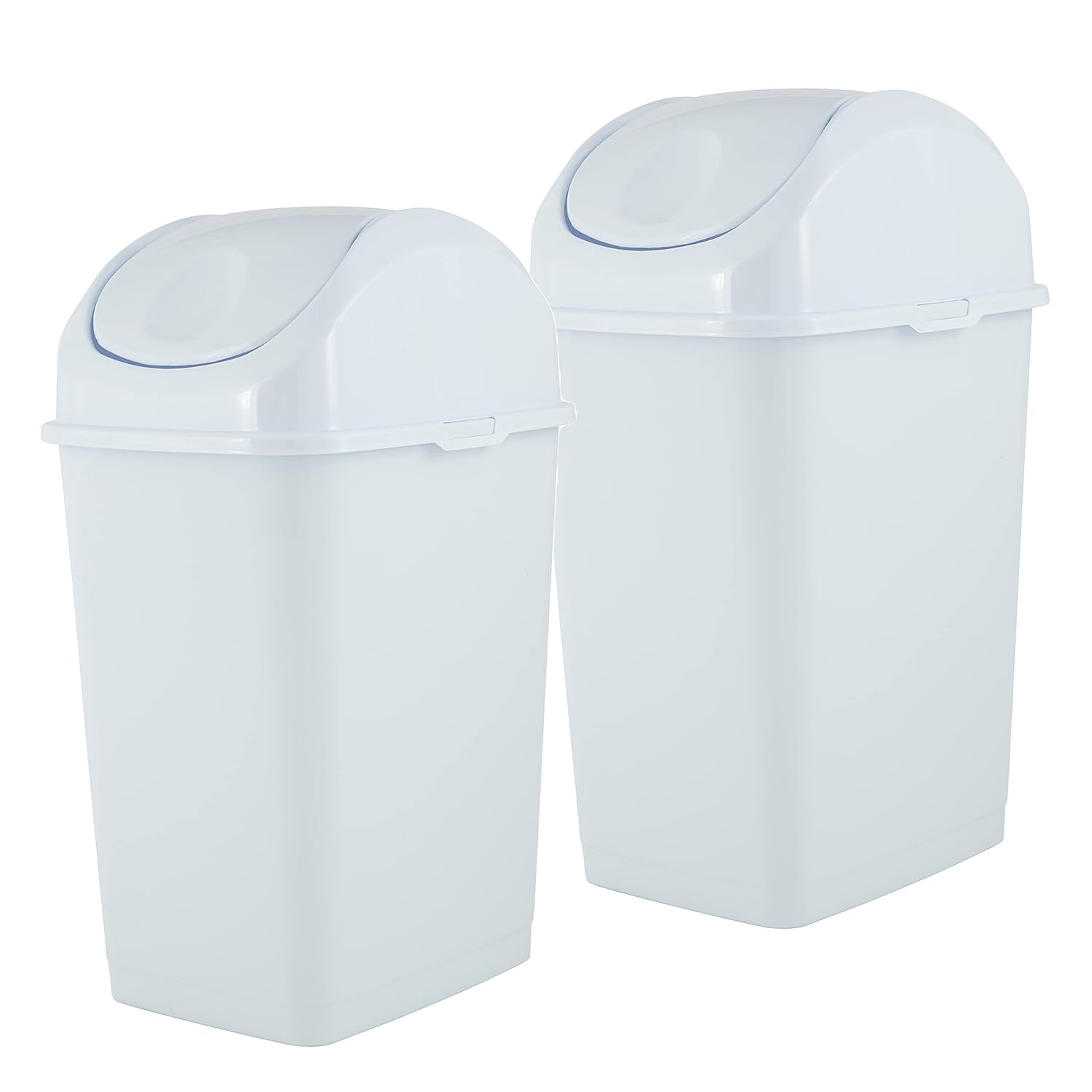 Superio Kitchen Trash Can with Swing Top Lid 9 Gallon Slim Waste Bin 37 Qt Sturdy Plastic Garbage Can Medium Recycling Bin for Office, Bathroom, Under Counter, Dorm, Bedroom (White-2 Pack)