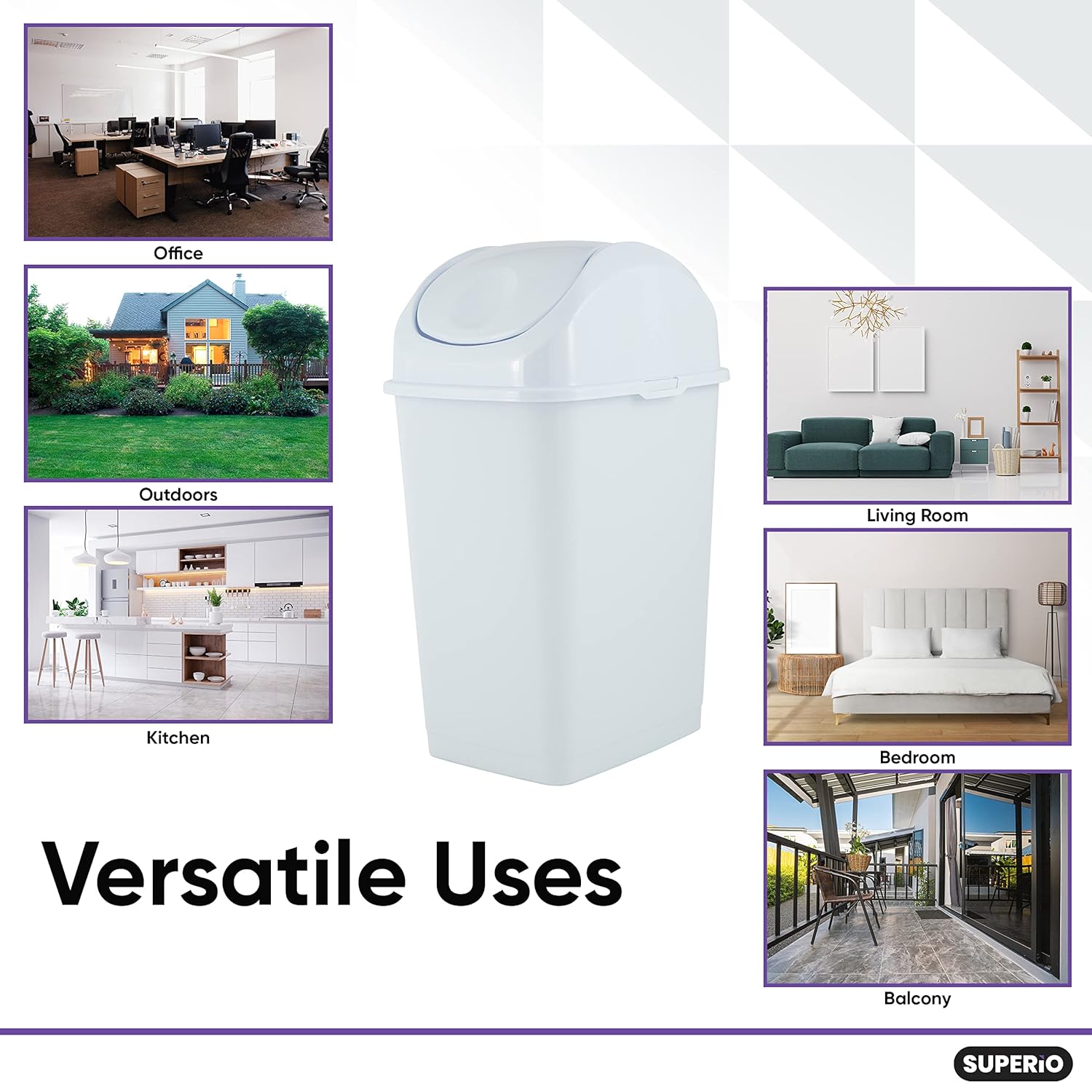 - Large Capacity – Superio lidded trash can has the perfect size for any type of outdoor or indoor waste bin application, with a capacity of 13 gallons, you won’t have to take out the trash multiple times. Ideal to use as a large outdoor trash can with lid or as kitchen waste bins.