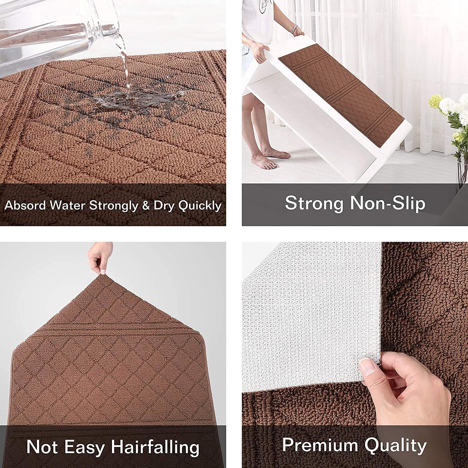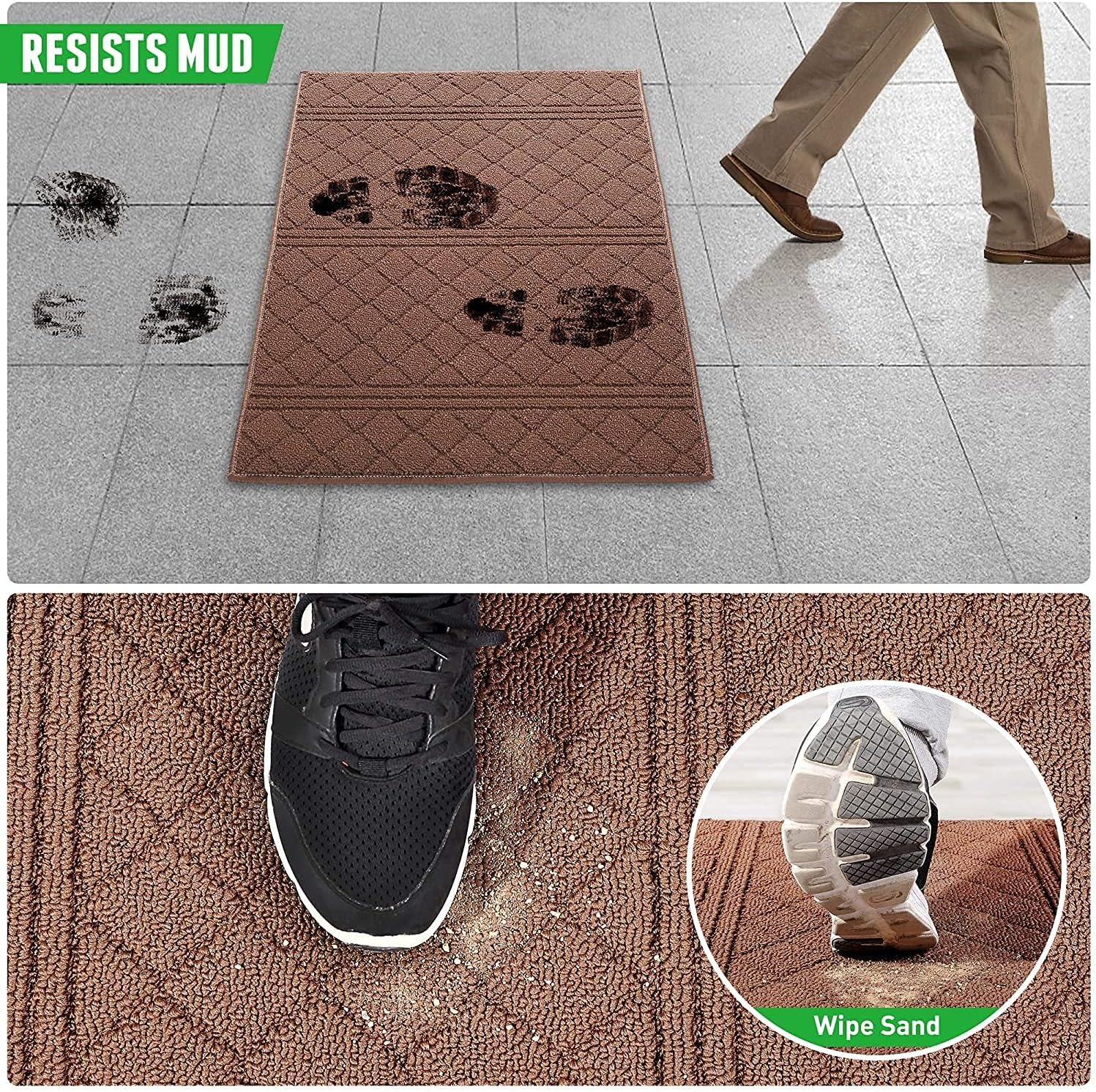 REFETONE Indoor Doormat, Front Back Door Mat 20"x32" Absorbent Rubber Backing Non Slip Door Mats, Low-Profile Resist Dirt Rugs, Machine Washable Door Rug Inside Floor Mat for Entryway, Chocolate