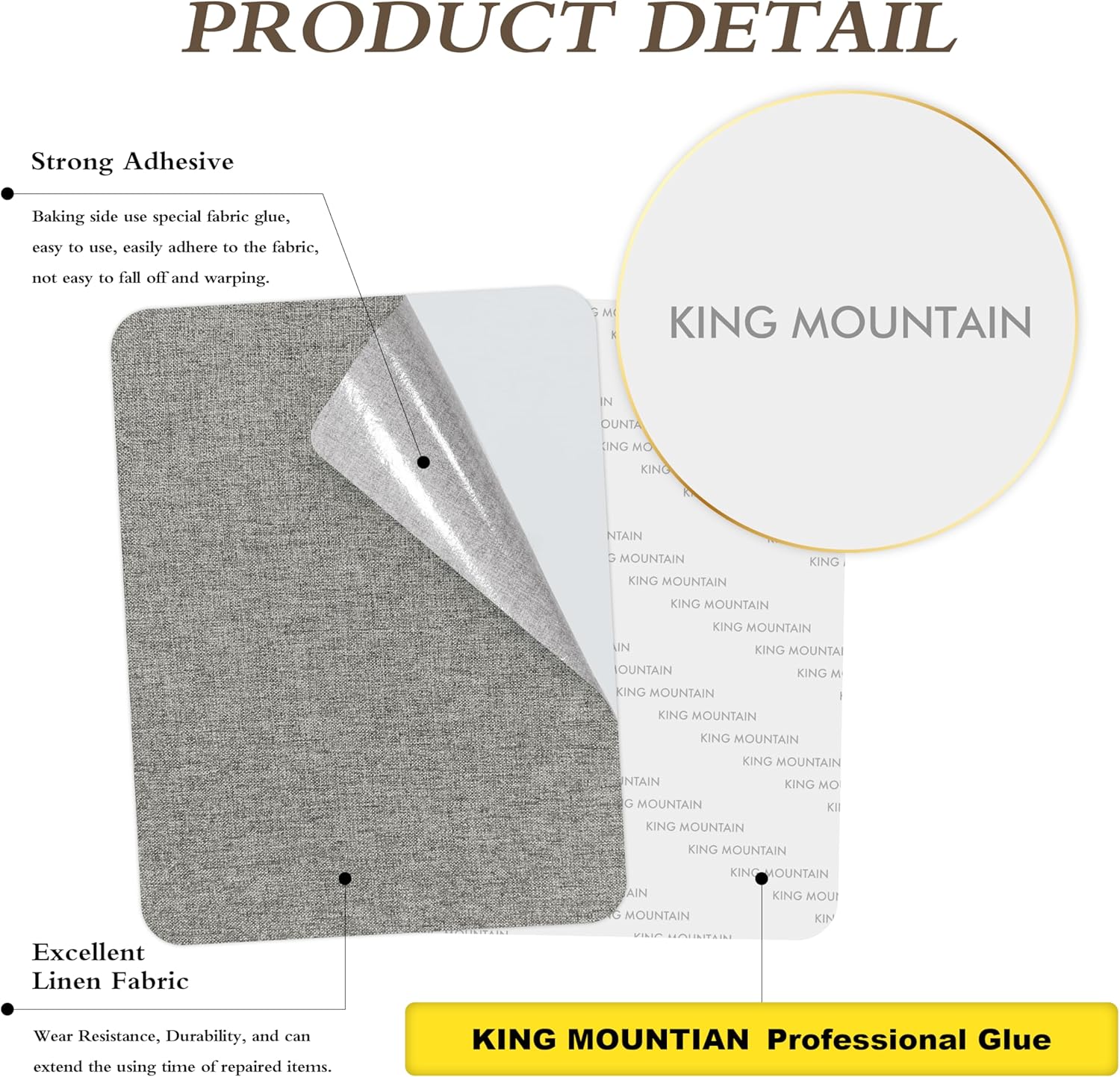 KING MOUNTAIN Fine Linen Repair Patches, Self-Adhesive Linen Fabric Patches, 8X11 inch Extra Size, Multi Color, Can be Used for Linen Sofa Repair and Linen Clothes Repair(Medium Grey,8" x 11")