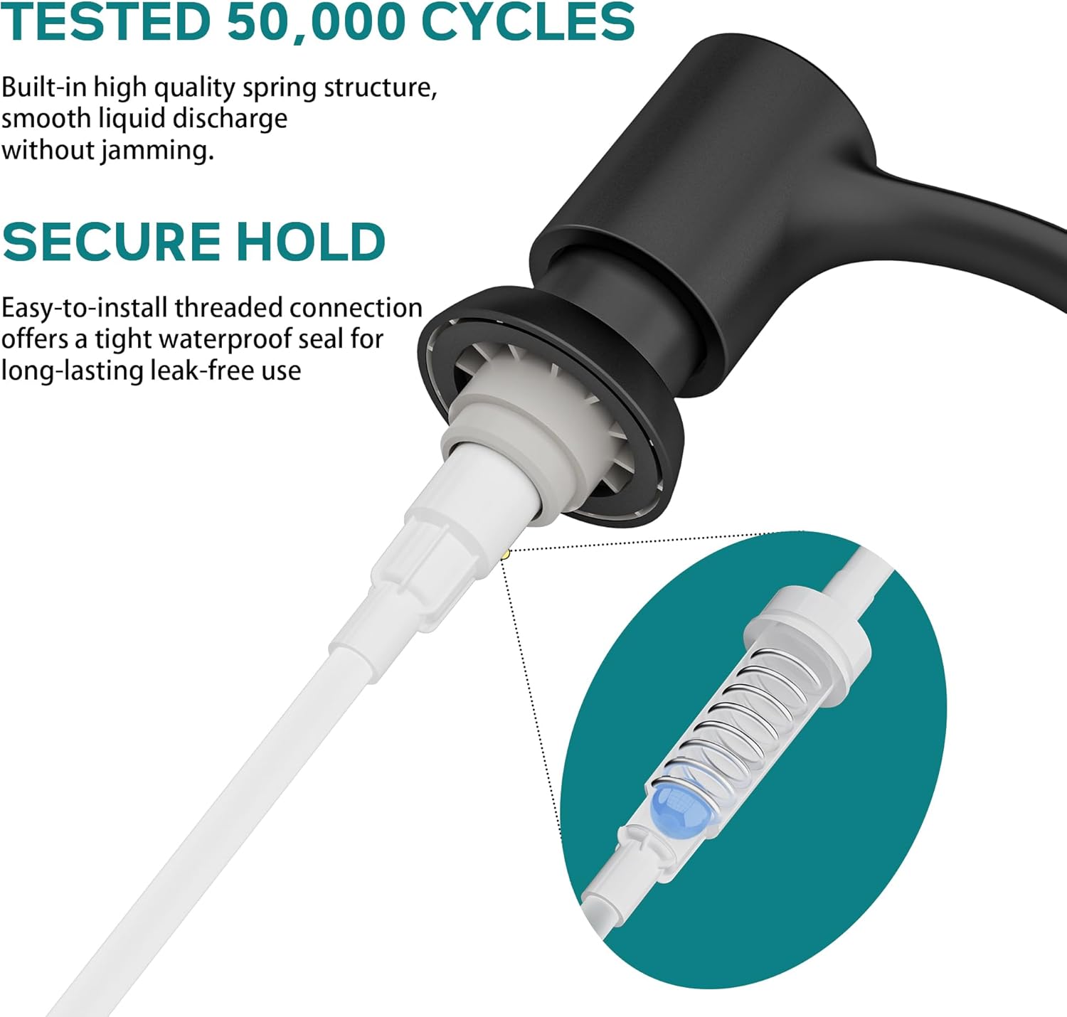 - 【Innovative Design】- The dispenser's metal check valve guarantees the tube stays submerged at the container's bottom, providing consistent suction for liquid soap, lotion, or detergent, ensuring soap dispenses with every push.