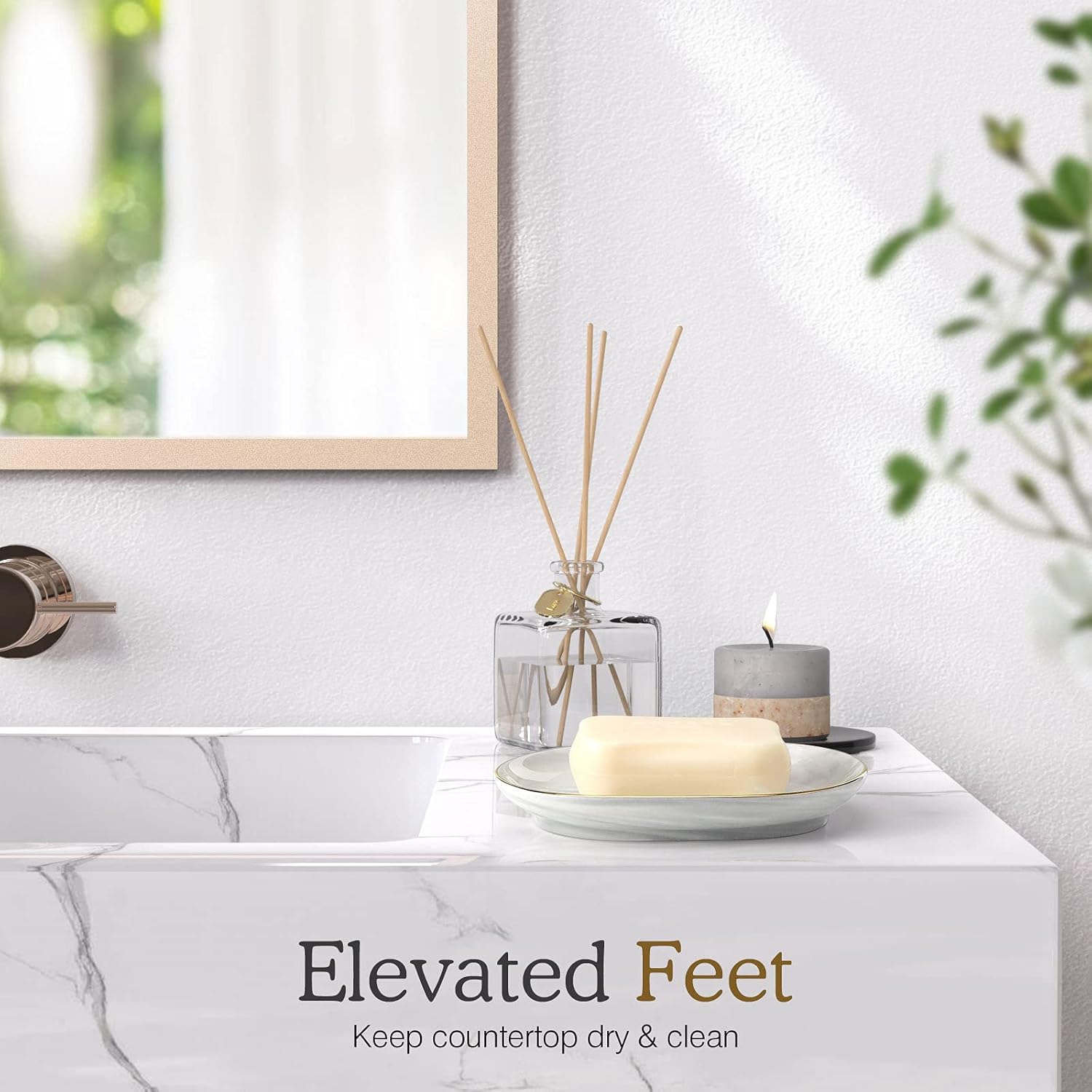 - 【Unique Marble Pattern and Gold Trim Decoration】 With exquisite marble patterns, this soap container is full of modernity and gives a feeling of high-end texture. At the same time, the gold foil trim design adds a sense of luxury to your bathroom or kitchen countertops. Both these unique designs can attract people's attention, which are a good choice to show your taste.