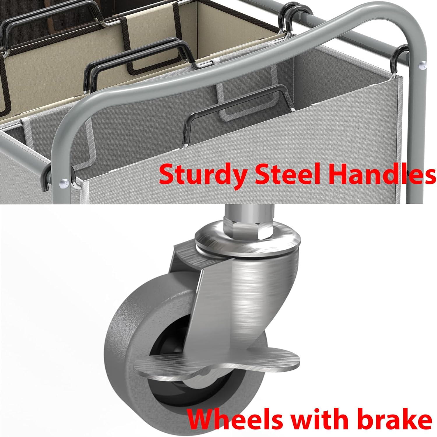 Simple Houseware Heavy Duty 3-Bag Laundry Sorter Rolling Cart, Silver/Assorted – Durable Triple Laundry Hamper with Removable Bags and Lockable Wheels for Laundry Room Organization