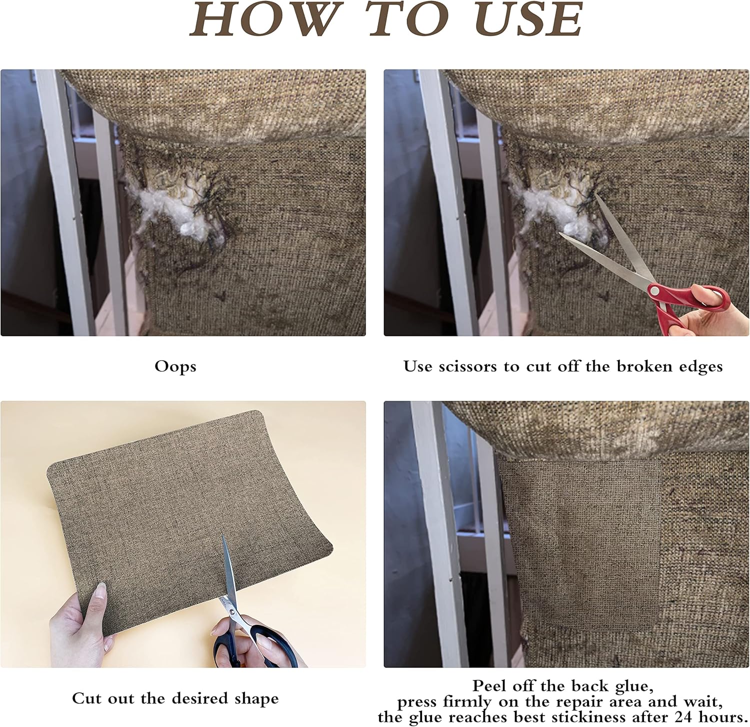 - HIGH QUALITY PRODUCTS: Coarse Linen Patch and strong adhesive. No glue residue, perfect fit in seconds. Brand new upgraded, with more glue, firmly press on the broken parts, the glue reaches the best outcome after 24 hours. Linen is durable, non-pilling, non-fading, non-shrinking and is suitable for all seasons.