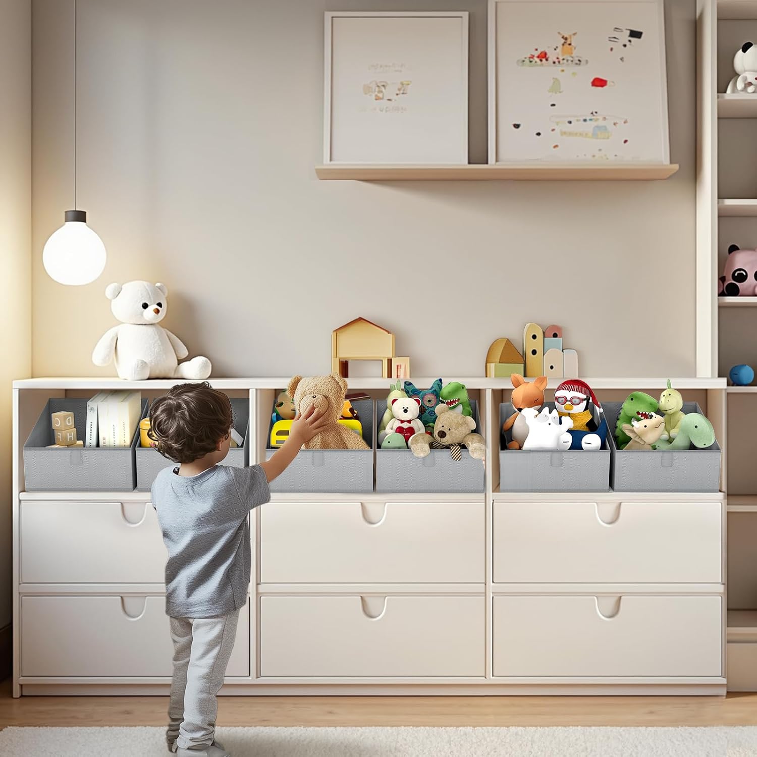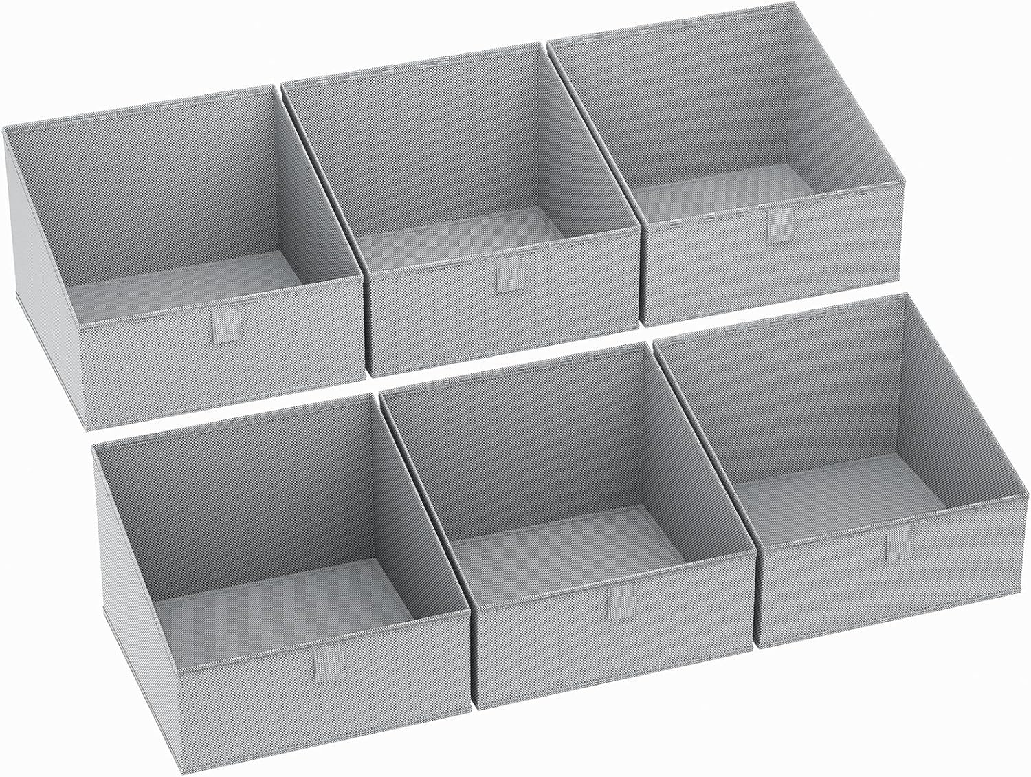 DIMJ Storage Bins for Closet, Trapezoid Storage Bins with Front Handle, Fabric Storage Baskets for Shelves, Line Closet Organizers for Toys, Boooks, Clothes, 6 Packs (Grey)