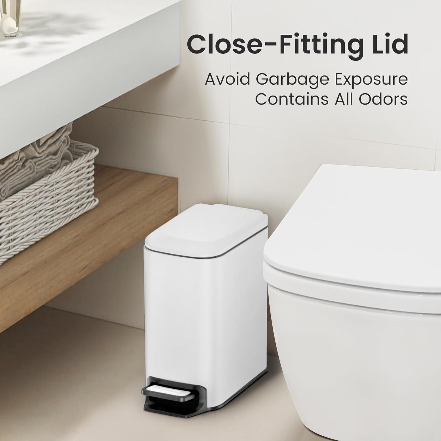 Cesun Small Bathroom Trash Can with Lid Soft Close, Step Pedal, 6 Liter / 1.6 Gallon Stainless Steel Slim Garbage Can for Bedroom, Diaper Waste Basket with Removable Inner Bucket (White)