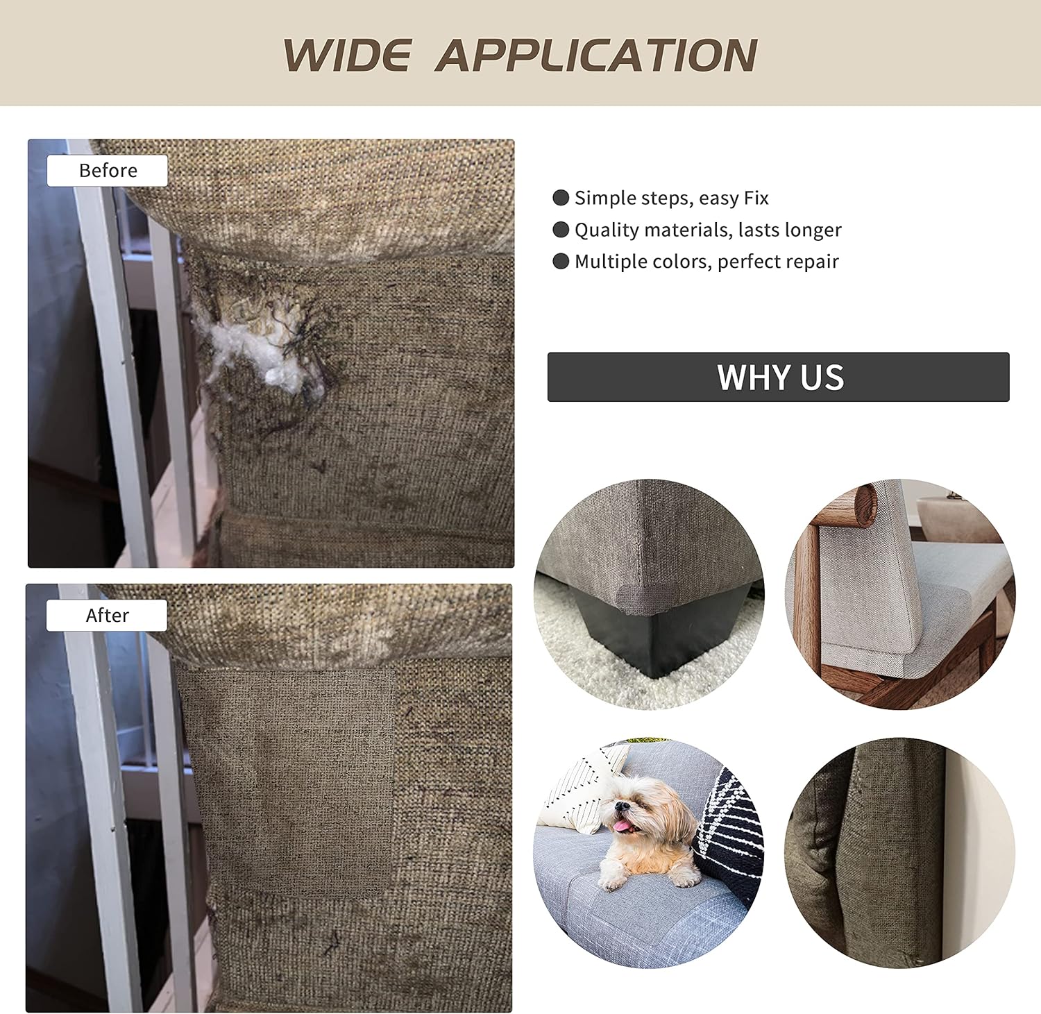- HIGH QUALITY PRODUCTS: Coarse Linen Patch and strong adhesive. No glue residue, perfect fit in seconds. Brand new upgraded, with more glue, firmly press on the broken parts, the glue reaches the best outcome after 24 hours. Linen is durable, non-pilling, non-fading, non-shrinking and is suitable for all seasons.
