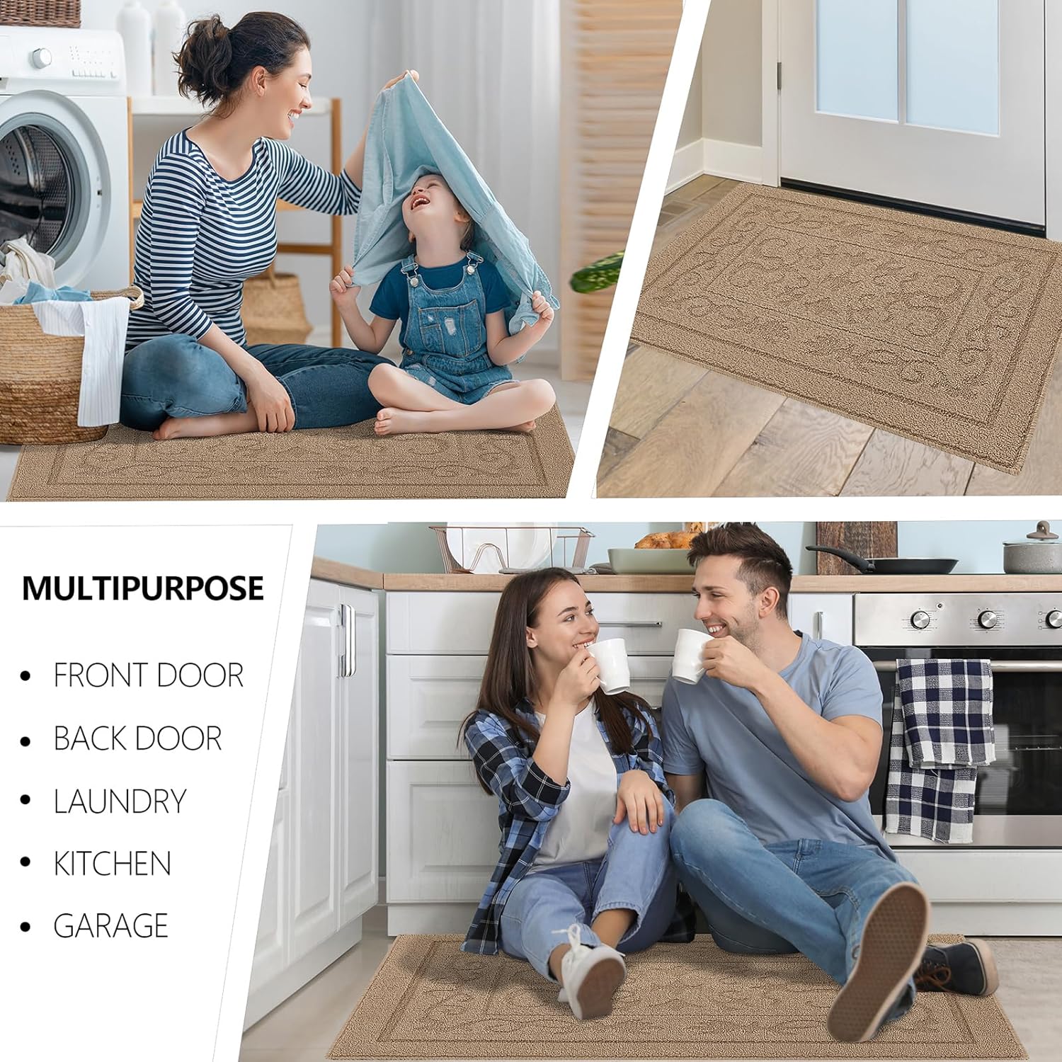 - TRAP DIRT AND MOISTURE EFFICIENTLY: Our indoor door mat is designed to keep your home clean by trapping dirt and moisture right at the entrance. Made from premium Polypropylene with dense yarns, this door mat quickly scrapes dirt off shoes, ensuring your floors remain dry and spotless. Keeping the floors clean and dry. Widely used in any weather, especially rainy, snowy or muddy weather. Suitable for front door, back door, entryway, indoor entrance, etc