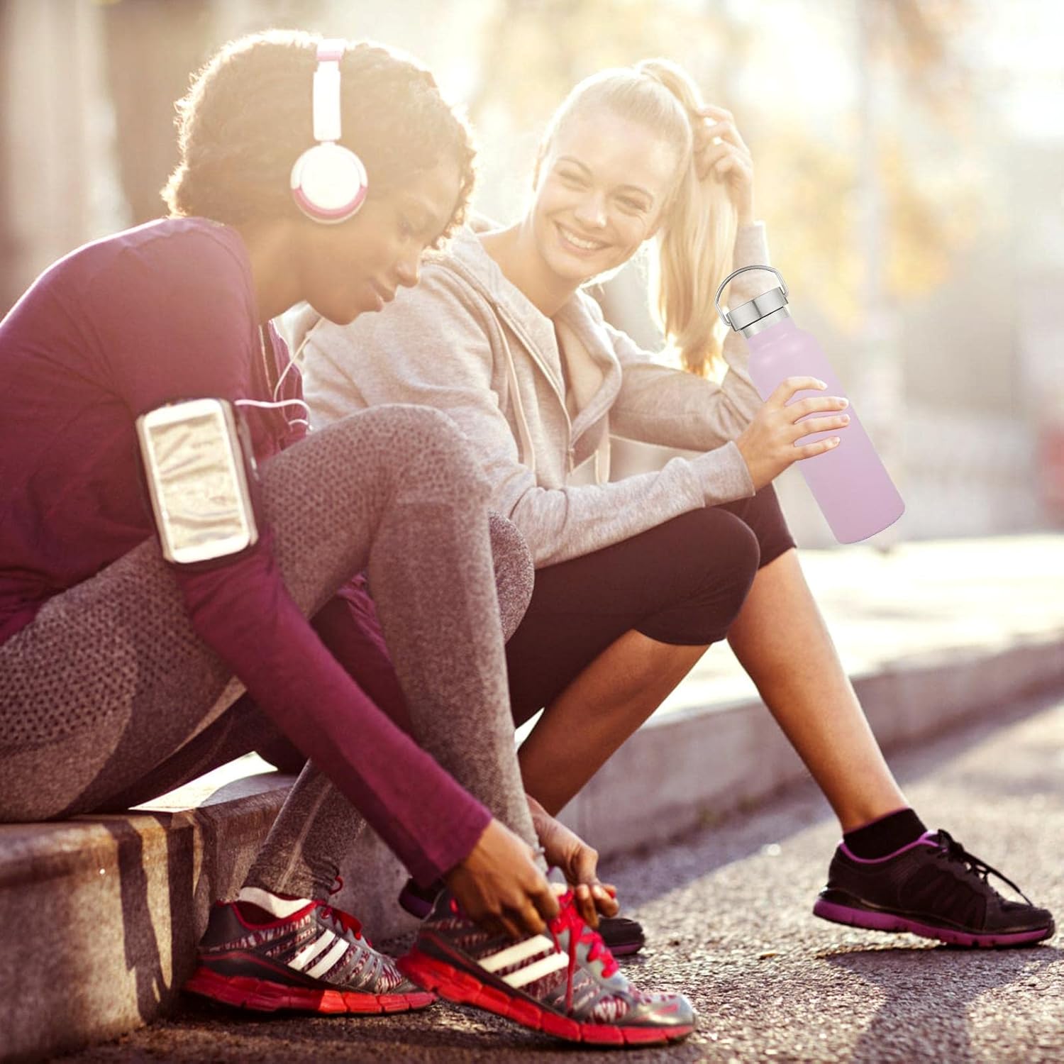 - PERFECT SIZE AND KEEP WARM FOR A LONG TIME: Our double wall insulation bottle protects temperature for up to 12 hours . The 20 oz stainless steel water bottle is perfect for everyday use and the cups fit on the bike cup holder and inside the backpack for your hiking, biking, beach, camping and fitness