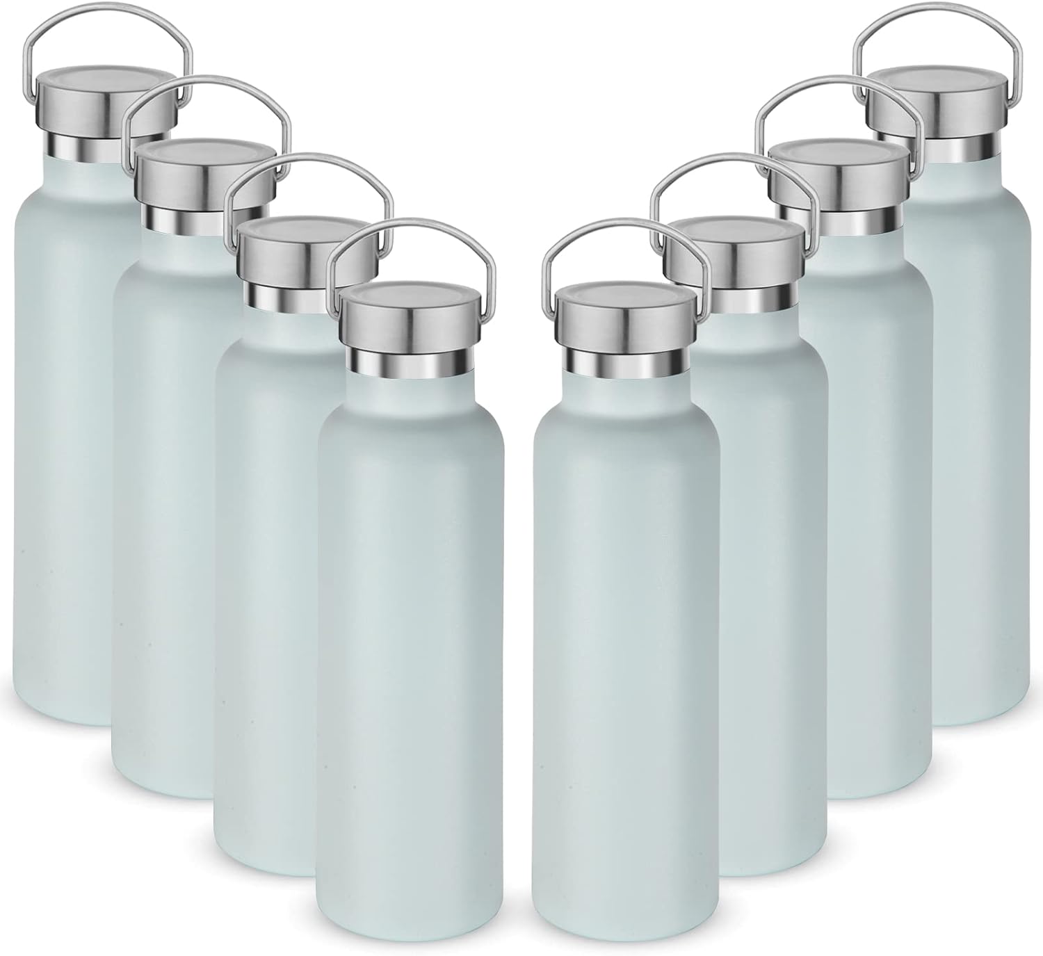 Neihepal 20 oz Insulated Water Bottles Bulk 8 Pack,Stainless Steel Double Wall Sport Bottle with Lid of Handle,Metal Reusable Flask with Cup Cap for School,Hikers,Gift (Fog,Set of 8)