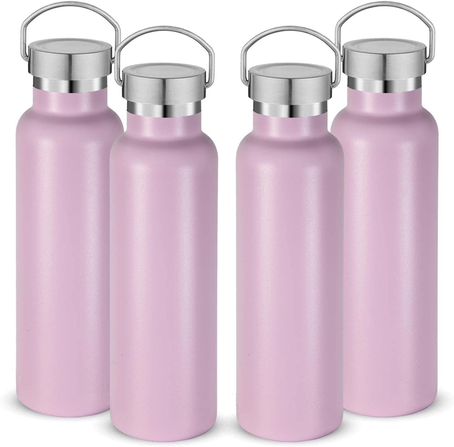 Neihepal 20 oz Insulated Water Bottles Bulk 4 Pack,Stainless Steel Double Wall Sport Bottle with Lid of Handle,Metal Reusable Thermoses Flask with Cup Cap for School,Hikers,Gift (Pink,Set of 4)