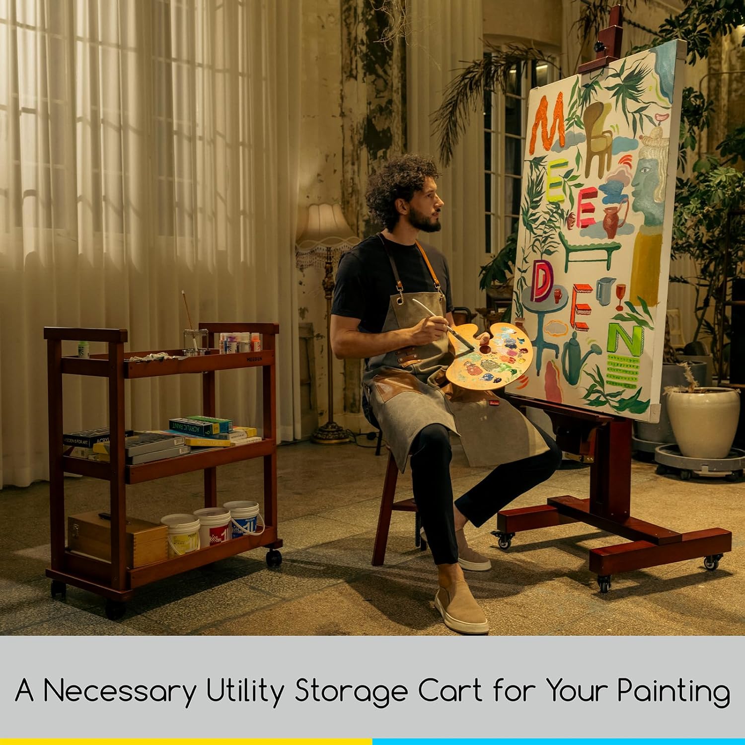 - SPACIOUS 3-TIER OPEN SHELVES: MEEDEN art supplies cart has 3 open shelves with enough storage space for you to store whatever you want, like canvas, paintbrushes, paints, oil painting knives, or other art supplies, even your daily necessities. It's a multifunctional storage cart for studio artists, art students, teachers, and art amateurs.