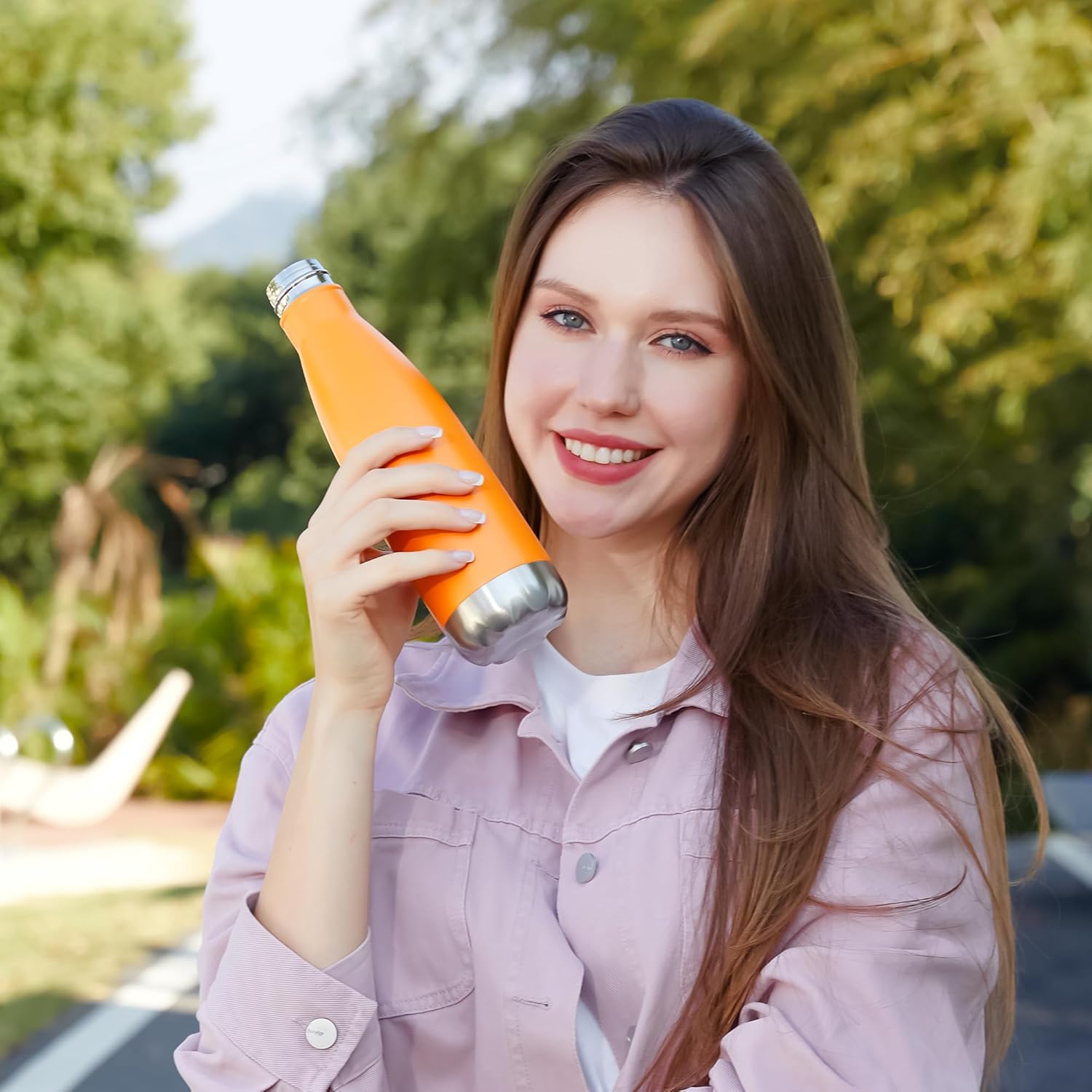 - TAKE IT WITH YOU:Our stainless steel water bottles are perfect for daily use and can be taken to anywhere - hiking, biking, beach, camping, gym, school or company! Put your portable sports water bottle in your gym bag or the side pouch of your backpack or as your daily companion. Keep you healthy and hydrated