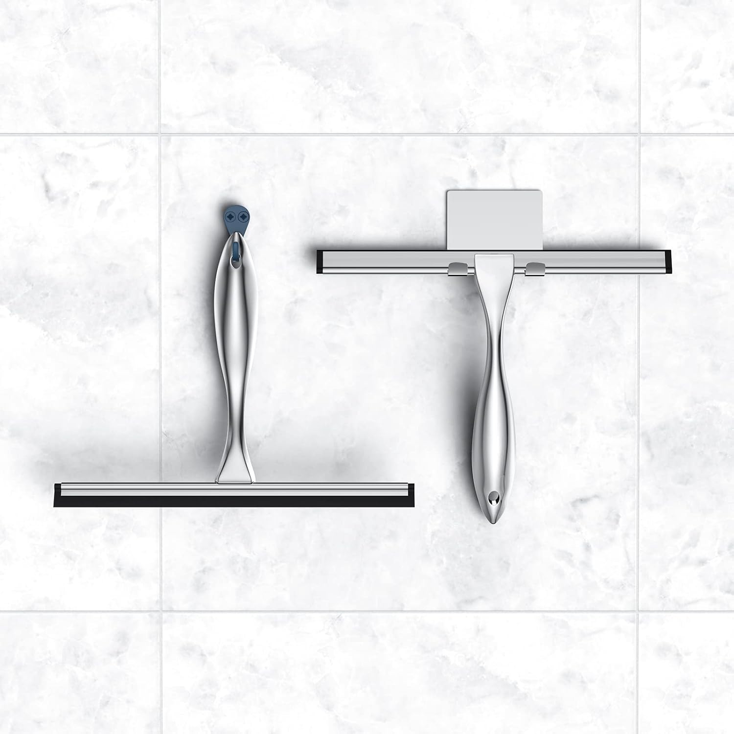 - 【EASY TO USE & STORE】- Complete with shower door hooks, hang it up on frameless shower glass doors after your use, removable, no drilling required and no tape residue left. And come with an extra adhesive hook, which can be applied on bathroom tiles to store objects such as shower squeegee and shower loofah. Plus, an additional hole on the bottom of the squeegee also allows you to store the easy squeegee almost anywhere for quick use