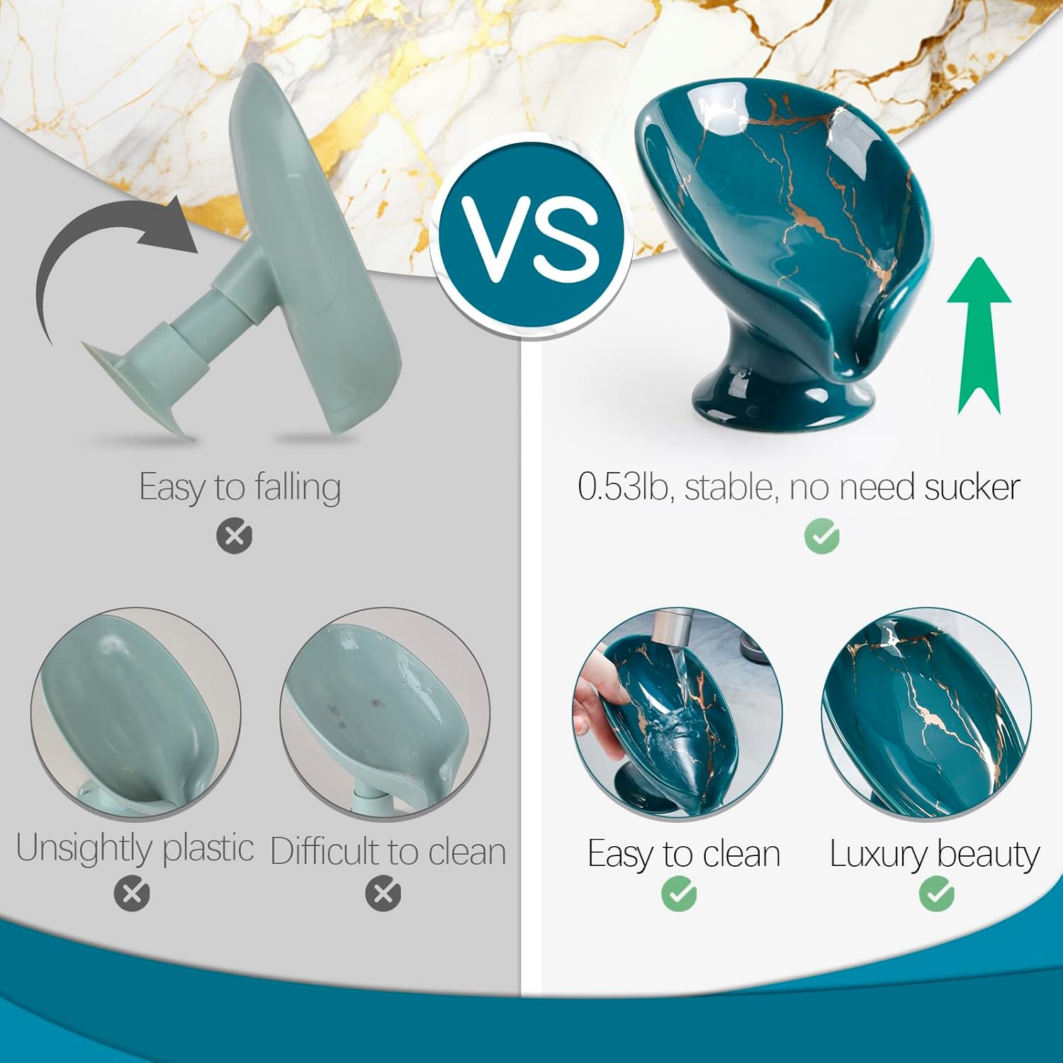 - Easy to Clean: This bathroom soap holder is self-draining and effortless to clean - just rinse with water. Feel confident placing it on your bathroom, kitchen sink, or bathtub edge. Your soap stays steadier here than on plastic bath soap dish holder
