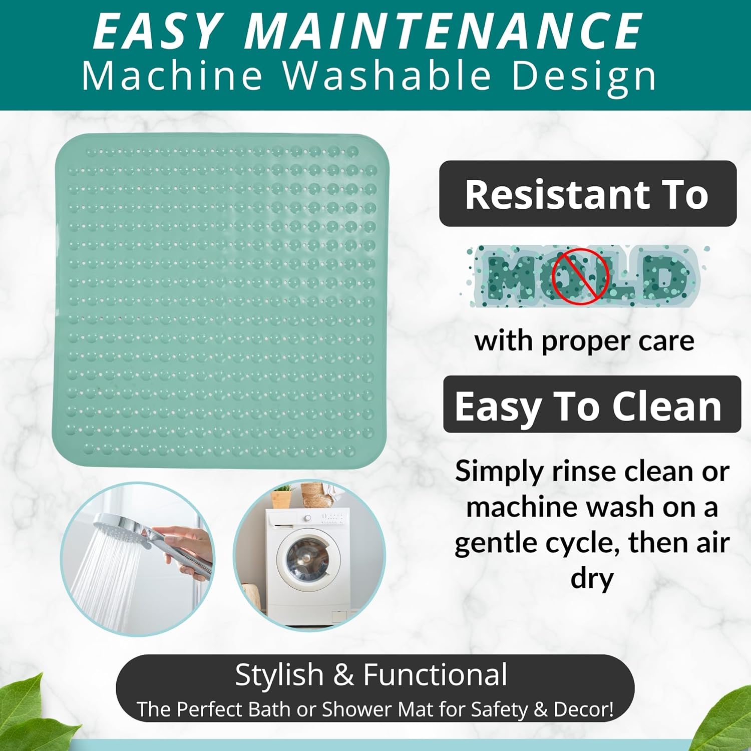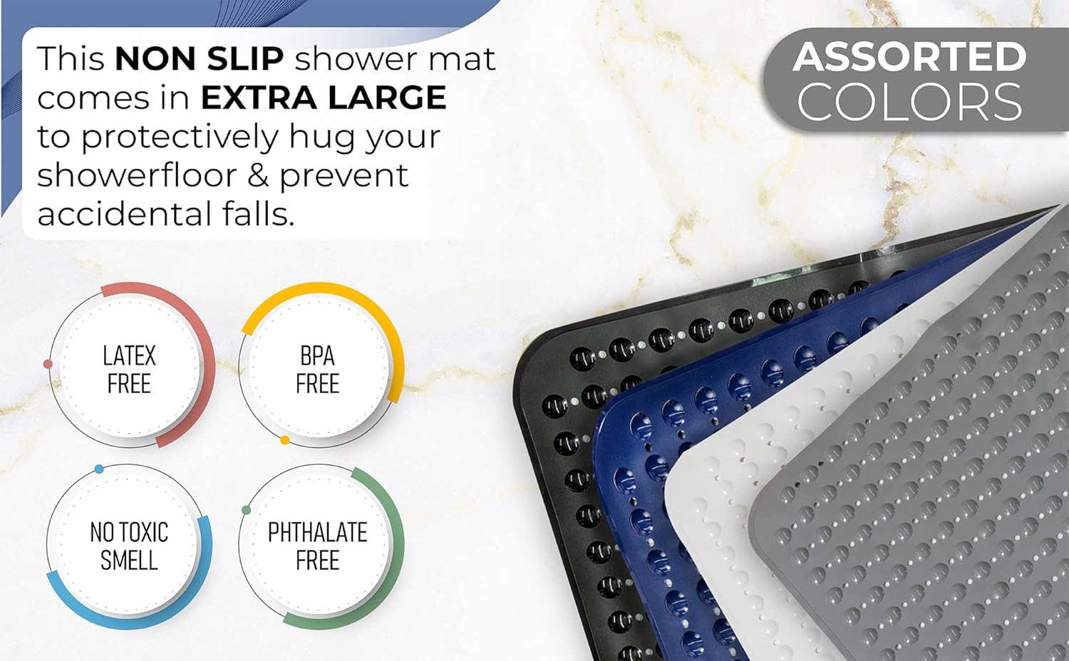 - NON-SLIP MAT enjoy 360-degree protection in your shower; prevent falls with an extra large Square bathroom shower bath mat for larger shower stalls with pliable suction cups for secure sticking capacity to help securely hold the shower mat to shower stall floors for safe anti-slip protection