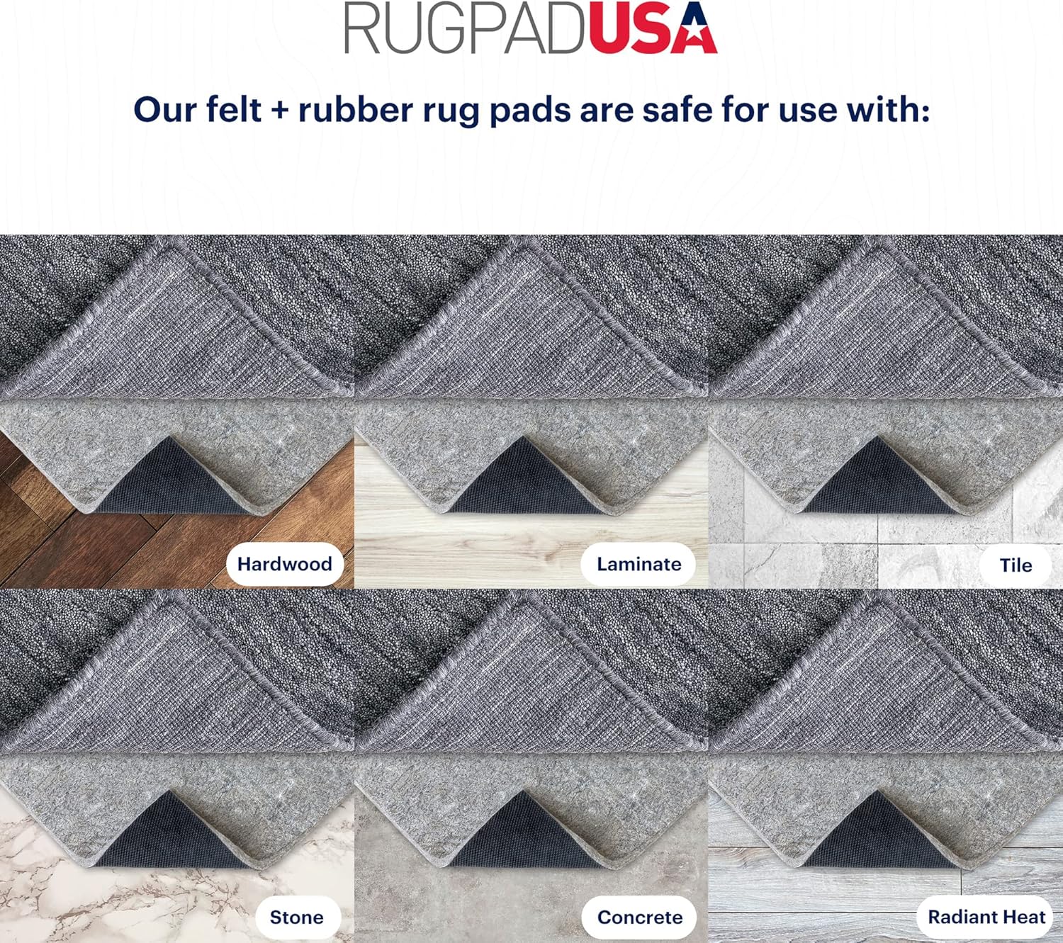 RUGPADUSA - Dual Surface - 7'10" x 10'3" - 3/8" Thick - Felt + Rubber - Enhanced Non-Slip Rug Pad - Adds Comfort and Protection - for Hard Surface Floors