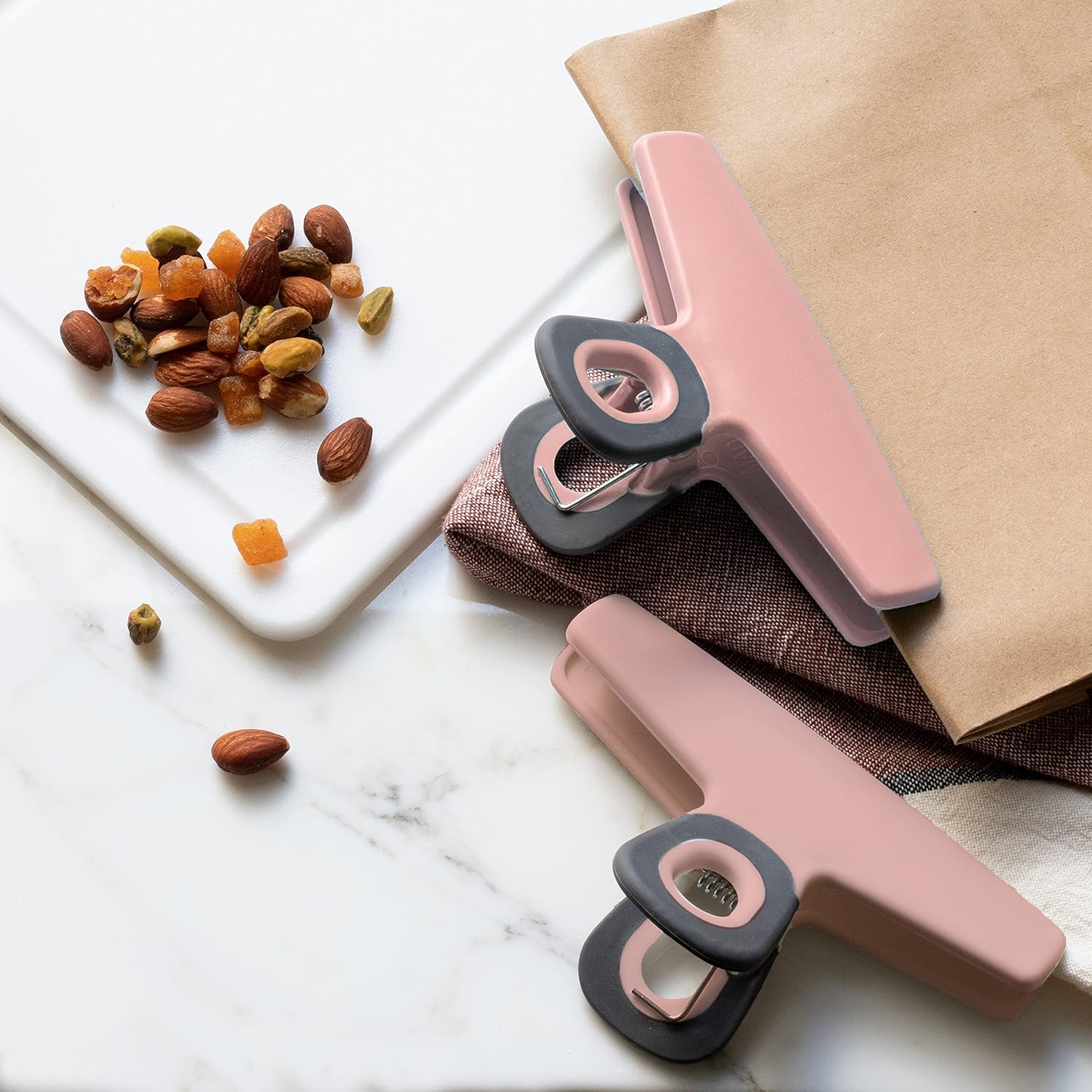- Set includes 8 pink rubber bag clips that are 5 inches wide - the great size clip for extra big bags of chips and food.