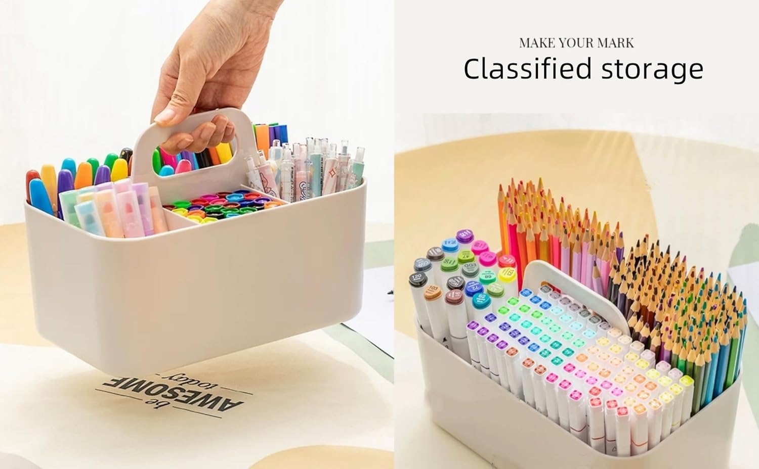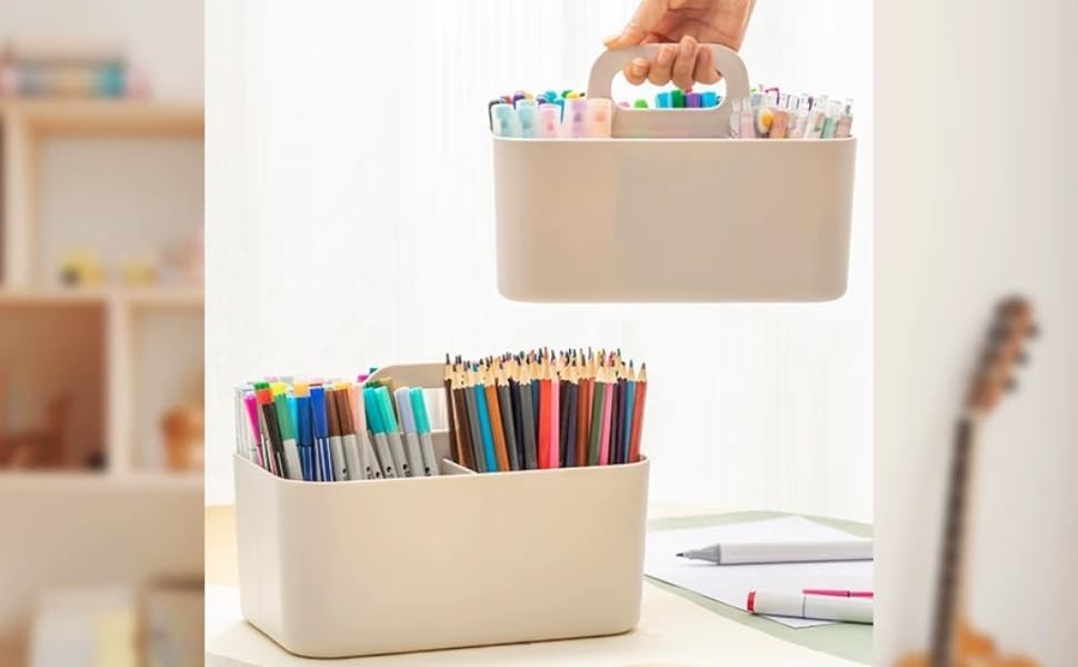 - Portable Handle & Multi-purpose: This storage basket is great for bathroom, bedroom, office, kitchen, craft room, school and more. Handle makes it easy to transport this caddy tote in and out of cabinets and around the home