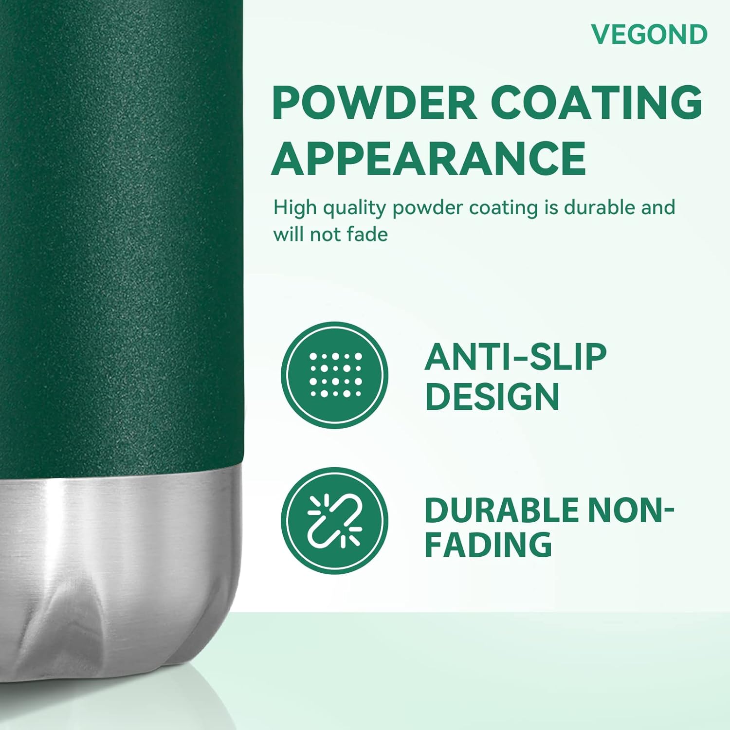 - All Day Heat / Cold Preservation : VEGOND double wall vacuum sports water bottles feature advanced heat preservation technology, keep your favorite drinks cold for up to 24 hours and hot for up to 12 hours. You can bring hot water, ice water, coffee, drinks with you. A 1.25”-diameter mouth accommodates small ice cubes and chopped fruits. The metal water bottle feature humanized design allows you to enjoy coolness in the hot summer and warmth in the cold winter