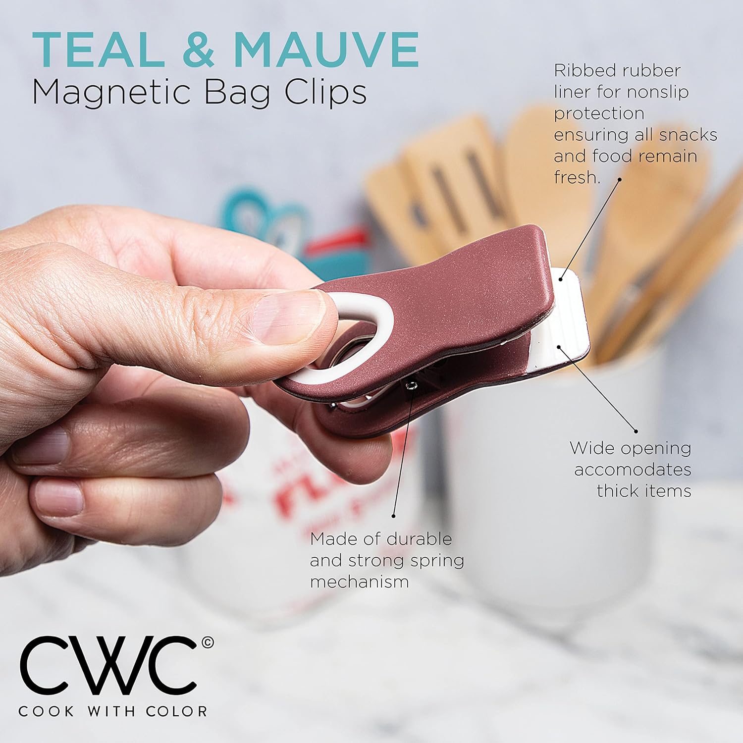 - Bag clips are one of those things you never have enough, invest in a set of durable, long lasting, soft touch, kid friendly Cook with Color food bag clips and organize your home and office with a colorful set of spring clips.
