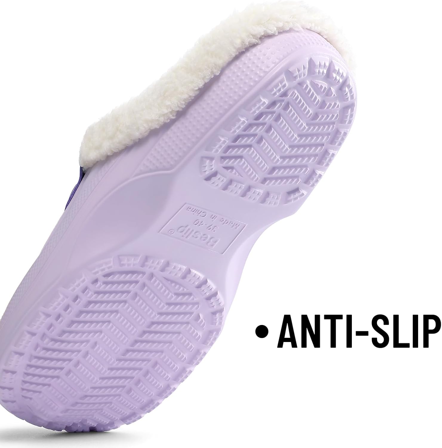 Beslip Classic Fur Lined Clogs Waterproof Winter Fuzzy Slippers for Women Men Indoor and Outdoor
