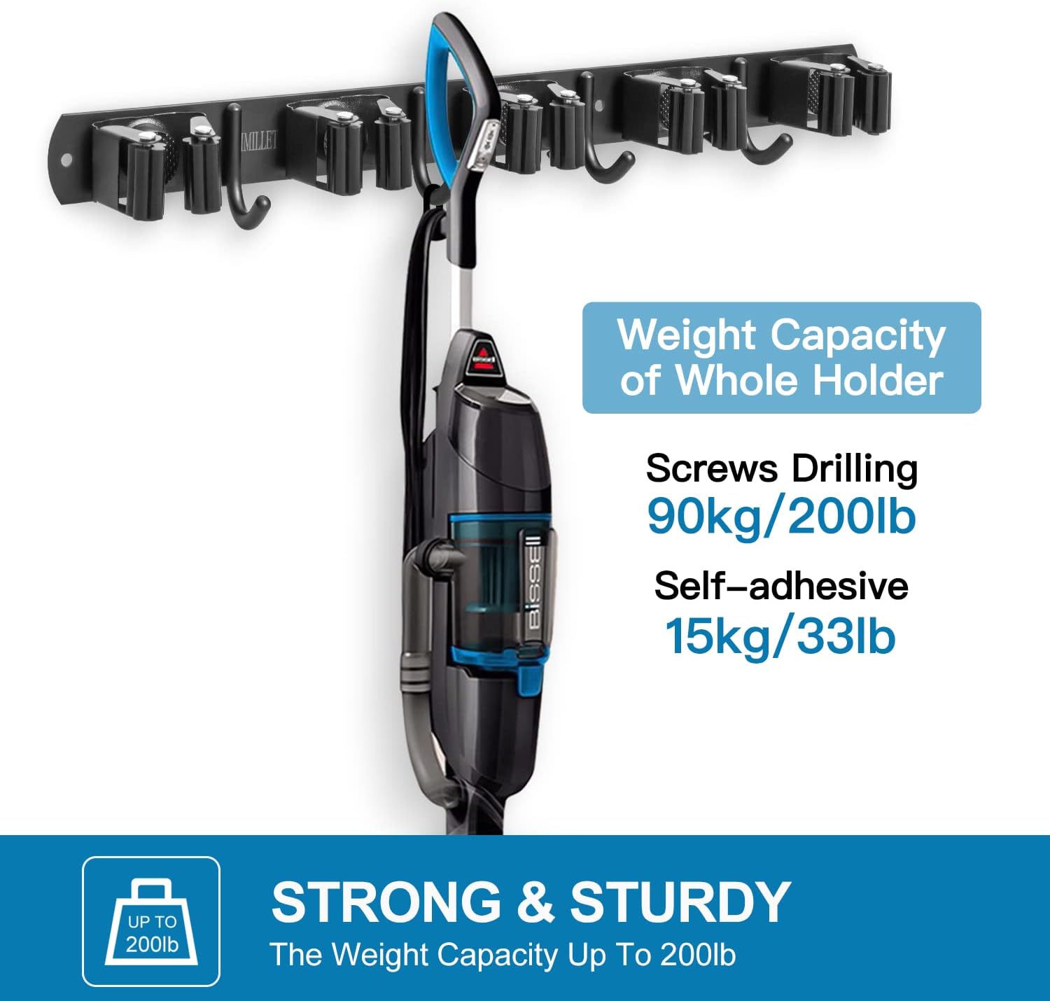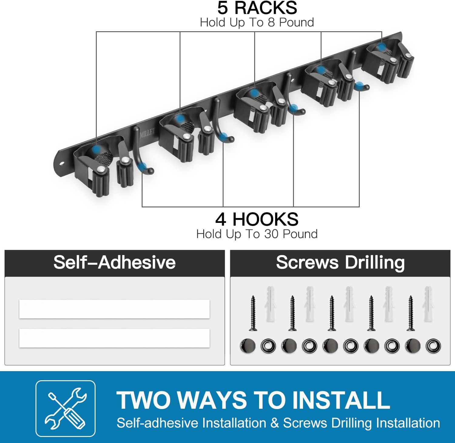 - Heavy Duty: Mop holder grip everything tightly and securely without slip. It can hold up to about 9 tools in total. Keep your place cleaned up and keep things organized