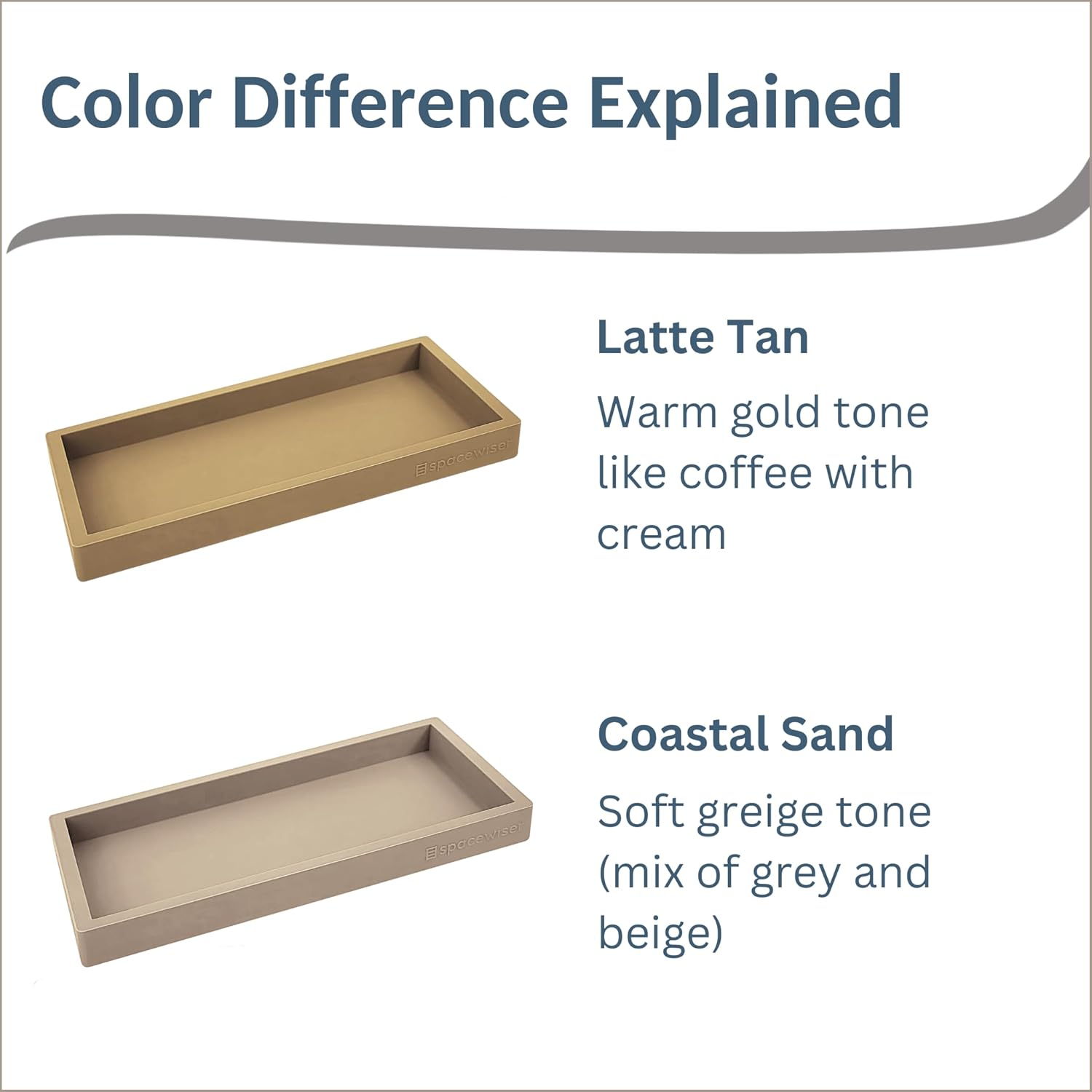 - The Details – Small Latte Tan Tray - 7.7” x 4”. Made of flexible but sturdy food grade silicone. This latte tan tray has a warm gold tone and is the perfect gold soap dispenser kitchen tray, gold bathroom tray, or gold vanity tray. It’s a perfect gold tray for bathroom counter areas or gold soap holder.