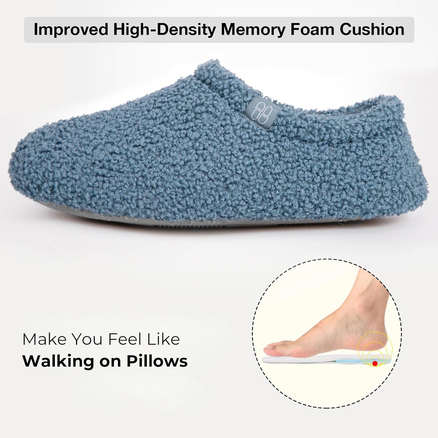 - Memory Foam Footbed: Fit the contour of your feet and make you feel like walking on the soft pillows. Cuddle your feet in the coziness after bath, during travel or a busy office day. Extra shock absorption EVA foam enhances stability for your each step