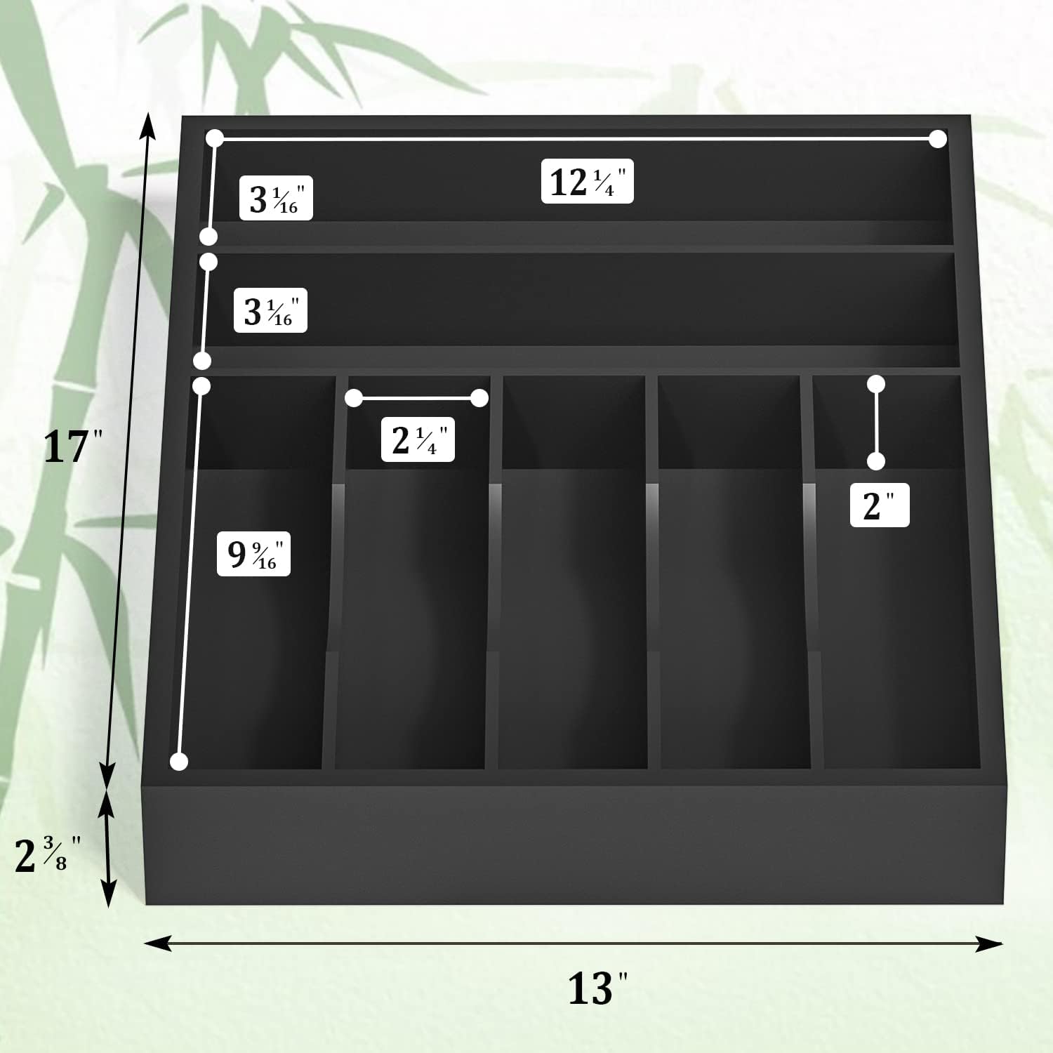 Utensil Organizer Silverware Drawer Organizer - 7 Slots Bamboo Silverware Tray For Kitchen Cutlery Office Supplies Makeup Desk Storage Garage Tool Organization W13”x L17” (Black)