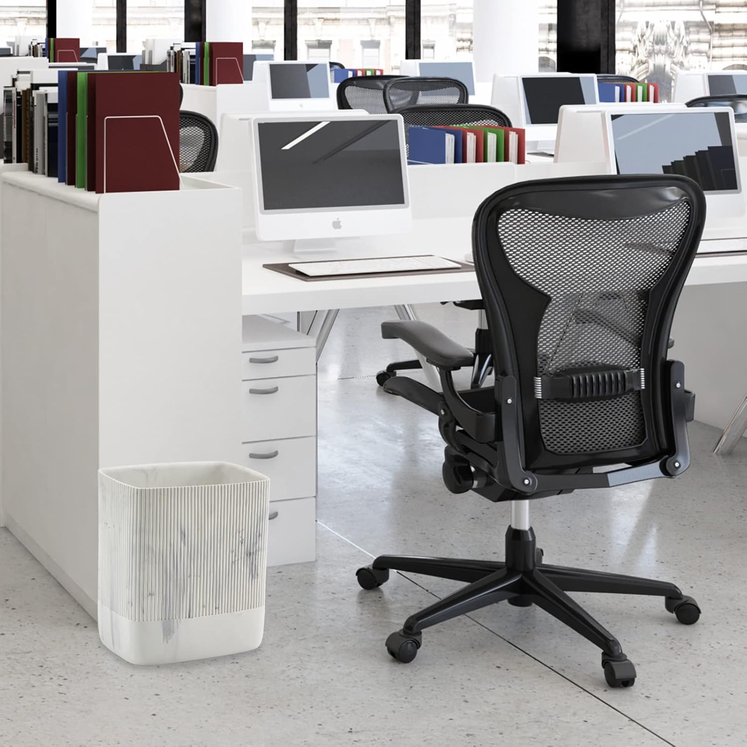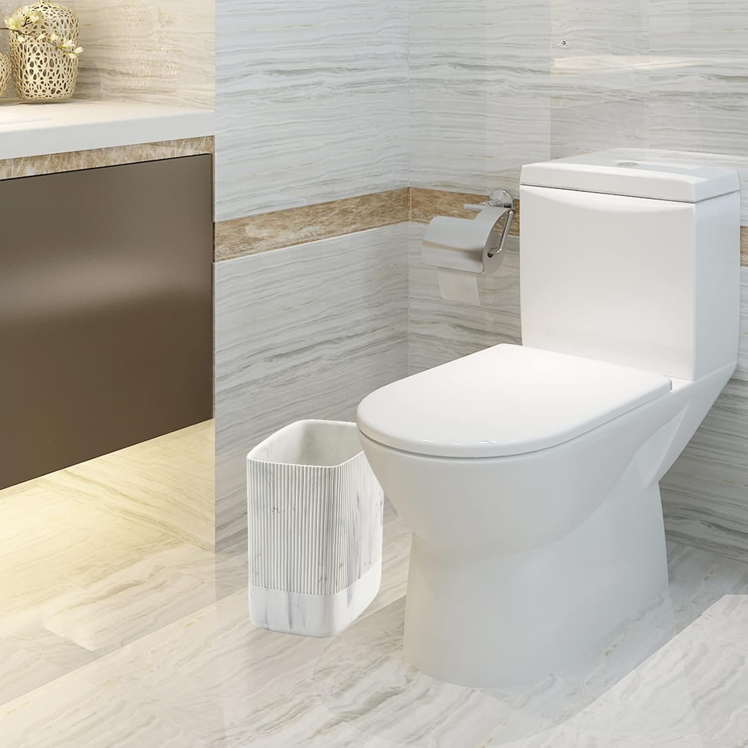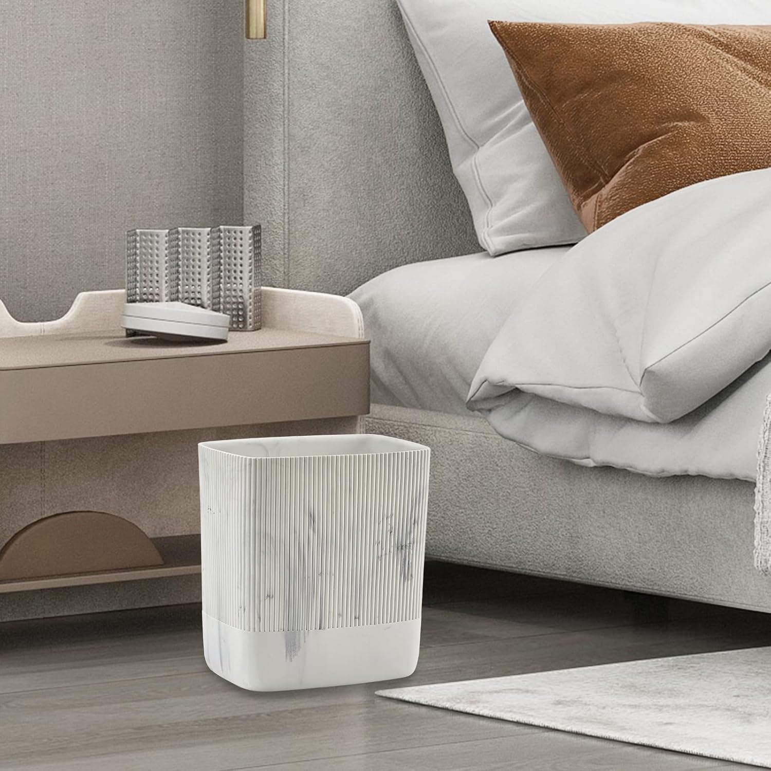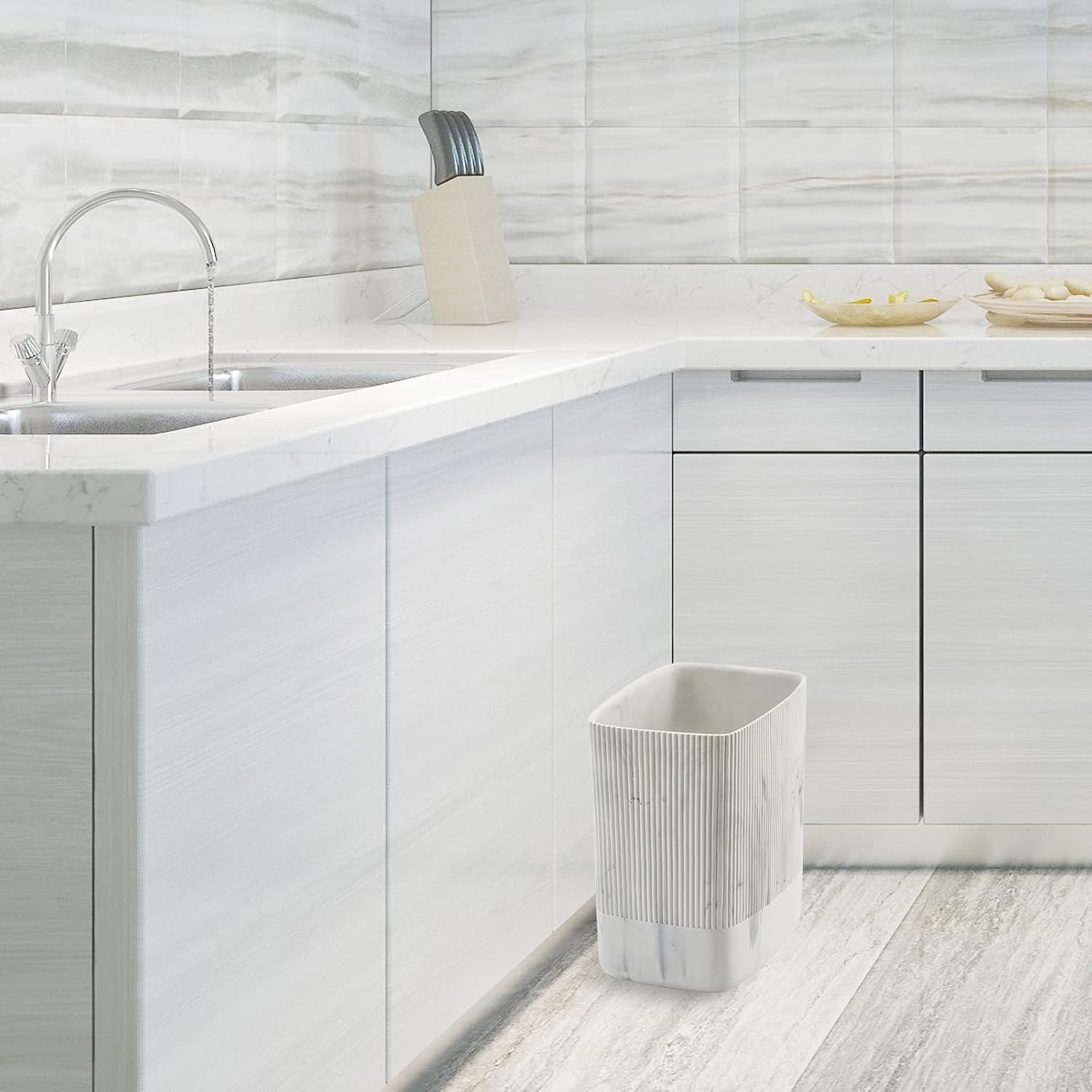 Polytree Bathroom Trash Can 1.8 Gallon(7 Liter) Small Kitchen Garbage Can,Decor Wastebasket for Bedroom Office,Resin Marble White