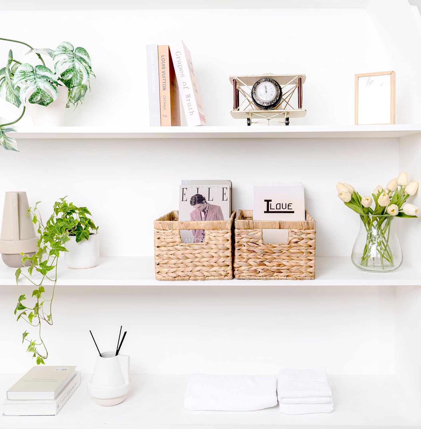 - ๐ฟ Multiple functions: the wicker shelf design for multiple purposes such as decorative basket, shelf baskets, towel basket, pantry baskets, kitchen baskets, kitchen pantry organizers and storage