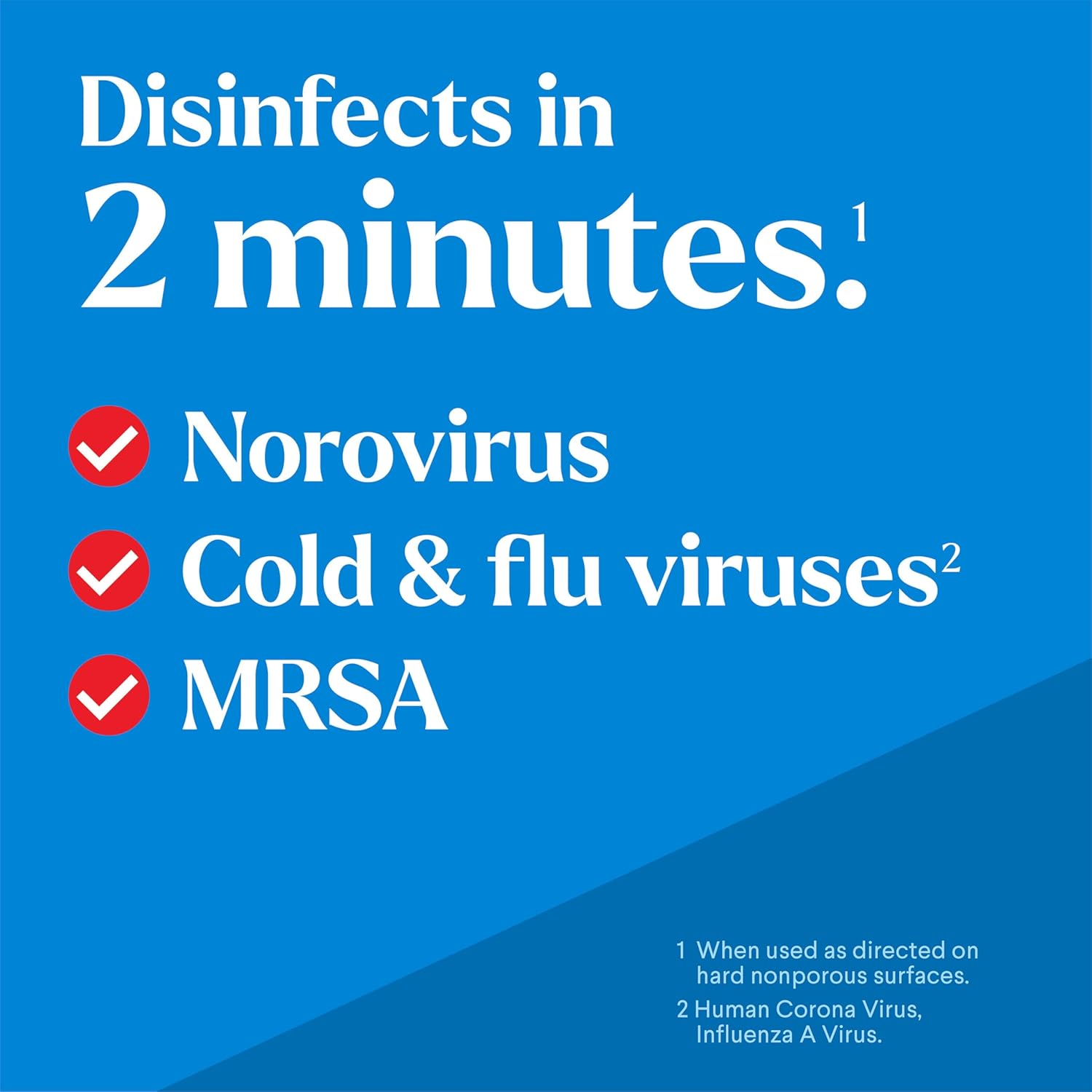 - DISINFECTS IN 2 MINUTES: Disinfects hard, nonporous surfaces against , the cause of , in 30 seconds and cleans better than a bucket and rag