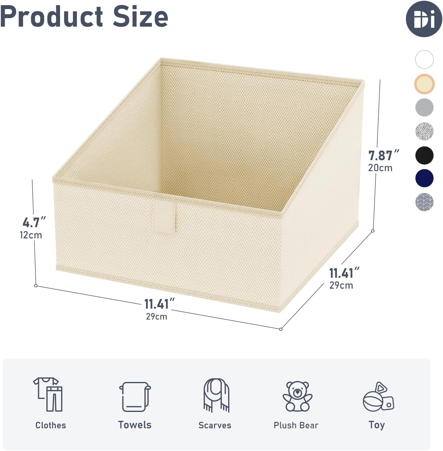 - 【Trapezoidal Design】These storage cubes are Trapezoid design that makes finding things convenient, also allows easy access when putting on the highest shelf. These are ideal closet bins for clothes, bags, shoes, towels, blankets, toys, dolls, and more